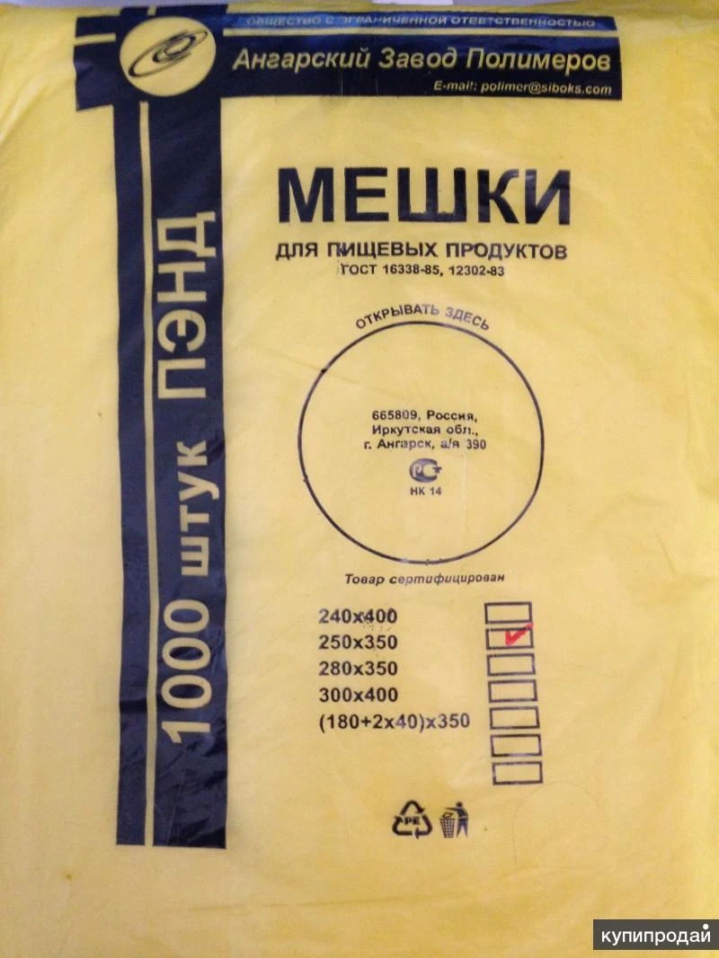 ООО «Ангарский Завод Полимеров» крупнейший в Сибири производитель полимерных материалов предлагает Полиэтиленовую пленку: хозяйственного назначения, тепличную, парниковую, строительную, термоусадочную, армированную, цветную, черную, светостабилизированную, стрейч-пленку паллетную, для ручной упаковки, пищевую стрейч пленку. Изделия из полиэтилена: мешки полиэтиленовые любых размеров, толщины, цвета, вида и назначения; мешки для строительного и бытового мусора; пакеты полиэтиленовые шириной до 1200 мм., пакеты фасовочные ПВД 250х350мм, 280х350мм, 200х400мм и т.д., пакеты фасовочные ПНД 250х350мм и т.д. в рулоне, пачках, пластах, с фальцем и без; пакеты майка с рисунком, с Вашим логотипом на заказ; вкладыши в бочку, коробку, биг-беги; крышки полиэтиленовые на стекло банку, трубы и т.д. Полимеры производства ПАО НК Роснефть: полиэтилен ПВД 10803-020, полистирол ПСВ-СВ-НМ-Р-О марка 1,2,4,6, полистирол ПСВ-СВ-НМ марка 15. Отдел сбыта +7(3955)573-555, 573-554, +79501440042(Теле2), +79501217123, +79500938191. Работаем по всей России.