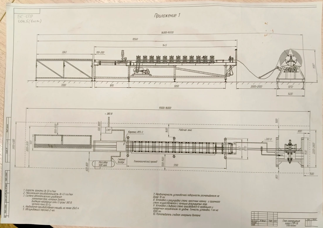 Оборудование использовалось бережно три года. Необходимые расходники, ЗИП, инструменты в придачу. Потребляемая мощность 5,5 кВт 380В. Транспортный габарит стана 7*1 метра. Занимаемая площадь станка на производстве вместе с рабочей зоной составляет 16*3 метра. После первой наладки станок обслуживает один неквалифицированный рабочий.