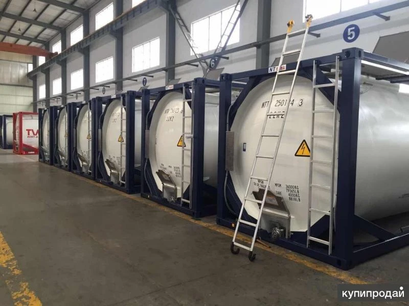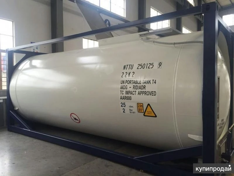 Внимание! Цена может быть не актуальной из-за курса доллара, пожалуйста уточняйте! Контейнер-цистерна (танк-контейнер) объём 25м3 тип Т4, для перевозки и хранения светлых нефтепродуктов различными видами транспорта, новый. Технические характеристики Тип контейнера Контейнер-цистерна (КЦ) модели Т4 Инструкция ООН, которой соответствует контейнер UN T4 Применяемые нормативные требования ASME VIII DIV.1(NCS), МОБИЛЬНЫЕ ЦИСТЕРНЫ ООН Т4, US-DOT, CFR49, UK-DfT, IMDG, ADR/RID, TC, ISO1496/3, CSC, TIR, UIC Код типа и размера по ISO 668:1995 22К2, габарит 1СС (20 ft контейнер) Размеры контейнера (ДхШхВ), мм 6058х2438х2591 Диаметр, мм 2378 Номинальная толщина стенки цилиндрической части, мм 6 Материал изготовления стенок / днищ конструкционная низколегированная сталь стандарт: GB 3531, марка: 16MnDR Номинальная толщина стенок / днищ, мм 6 Давление испытательное, Бар/МПа 3/0,3 Давление рабочее, Бар/МПа 2/0,2 Давление испытательное на герметичность, Бар/МПа 1/0,1 Давление открытия клапана, Бар/МПа 2,19/0,219 - -0,14/0,014 Расчетная температура эксплуатации, °С -40…+65 Максимальная рабочая температура, °С +65 Срок службы, лет 30 Собственная масса контейнера (тара), кг 4000 Макс. вес брутто/ Технически допустимая полная масса, кг 36000 Максимальная нагрузка/грузоподъемность, кг 32000 Объём цистерны,м3 25 Устройство налива люк-лаз с крышкой GUARD, диаметр 500 мм, крышка на 8 болтах Предохранительный клапан вакуумно-предохранительный пружинный Ду63 (2,5" BSP) с огнезащитной сеткой Устройство нижнего налива /слива GUARD / AF , Ду80 мм (3"BSP). Последовательно установленные внутренний и наружный клапаны с Ду 80 мм, выходной патрубок с резьбой 3"BSP и резьбовой крышкой Клапан воздушной (газовой) магистрали фланцевый с наружной резьбой BSP 1,5"; c резьбовой пробкой, устанавливаемой, если не установлен манометр Подъемная лестница (с торца т/к) со стороны сливного крана Дорожка, поручень (сверху т/к) со стороны подъемной лестницы Конструкция танк контейнера рамная Материал изготовления рамы контейнера стандарт: GB/T 1591 марка: Q345DGB Штабелируемость, кг 216000 Также осуществляем поставку танк-контейнеров для различных отраслей промышленности для перевозки других видов жидкостей, в том числе опасных – токсичных и горючих. Предоставляем международный сертификат морского регистра (Lloyd's Register)!!! В АРЕНДУ НЕ СДАЁМ!!!