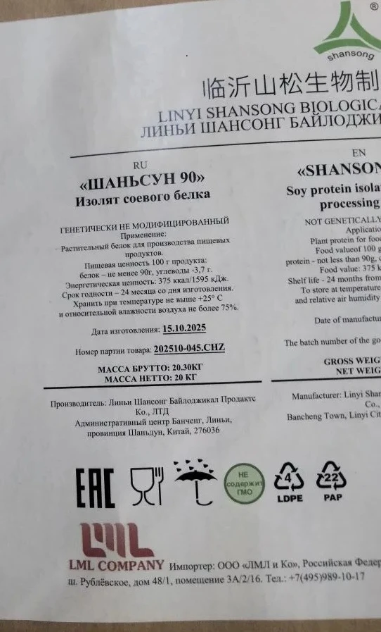 | Изолят соевый, протеин 90% | 270 ₽ / км |