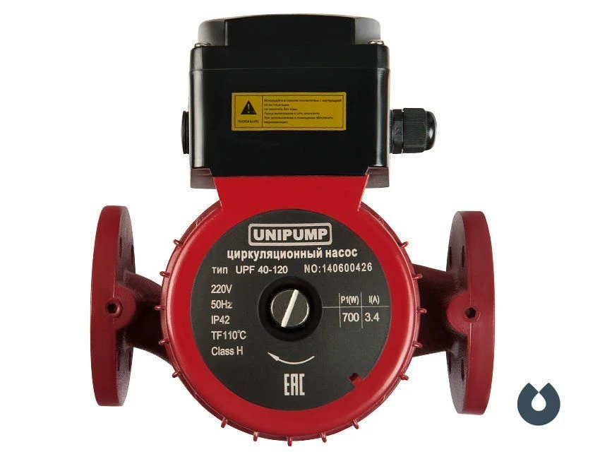 Циркуляционный насос UPF 50-120 - циркуляционные насосы с «мокрым» ротором и фланцевыми соединениями. Проходное сечение насоса DN 50. Насос UPF 50-120 предназначен для перекачивания теплоносителя в системах отопления с постоянным расходом. Насосы этой серии предназначены для систем отопления больших размеров. Рабочие жидкости — чистая вода малой жесткости, маловязкие, неагрессивные и невзрывоопасные жидкости без твердых или длинноволокнистых включений, а также примесей, содержащих минеральные масла. Материал корпуса насоса — чугун Максимальная температура теплоносителя — +110 С Максимальное давление в системе — 20 бар Максимальная допустимая температура окружающей среды — +40 С. Питание - от электросети — 230 В, 50 Гц. Характеристики насоса Unipump UPF 50-120 Мощность макс: 1000 Вт Напор макс: 12 м Производительность макс: 15 м3/час Максимальное допустимое давление в системе: 20 бар Проходное сечение: 50 Монтажная длина: 280 мм