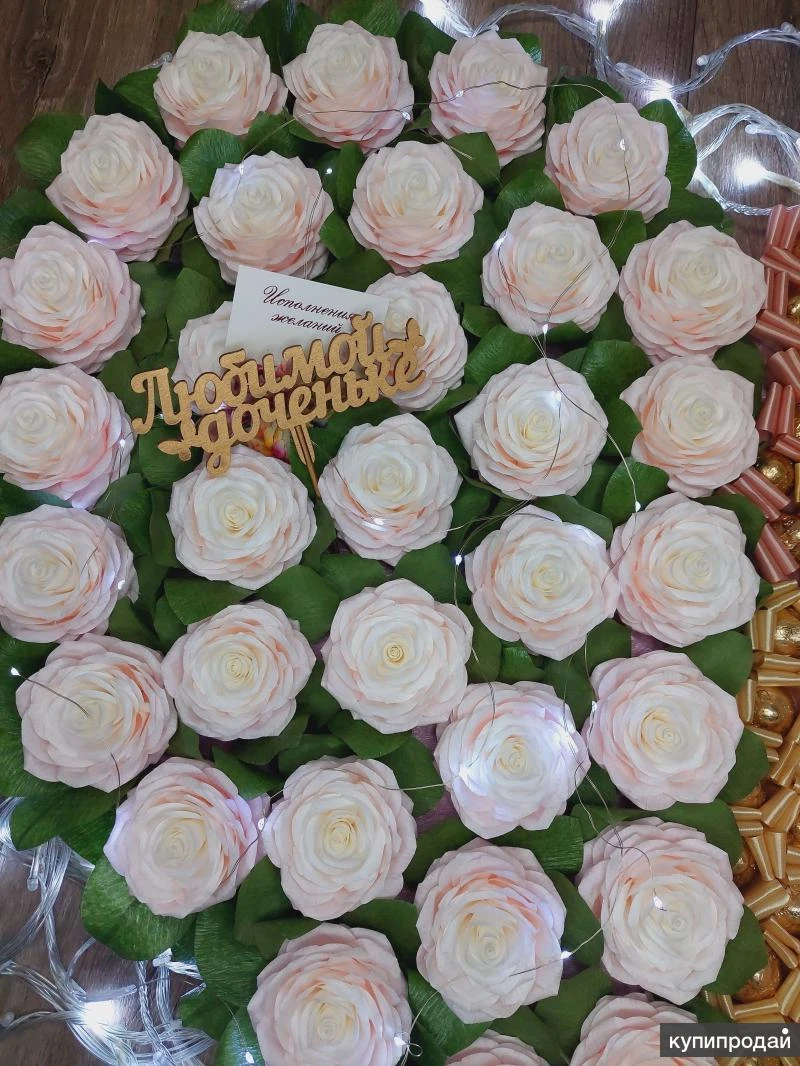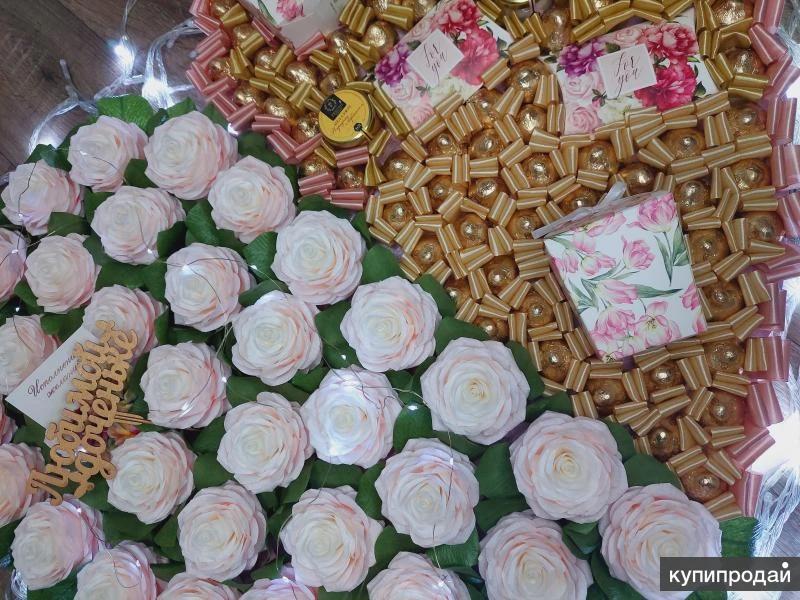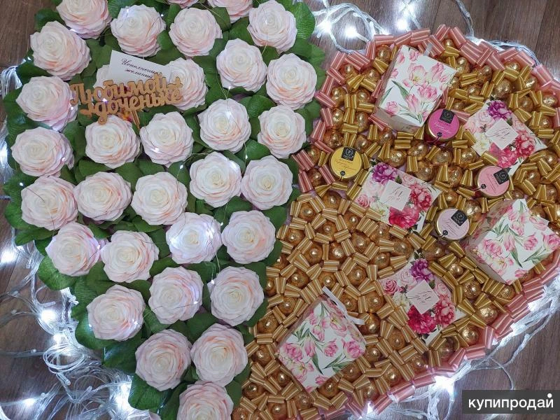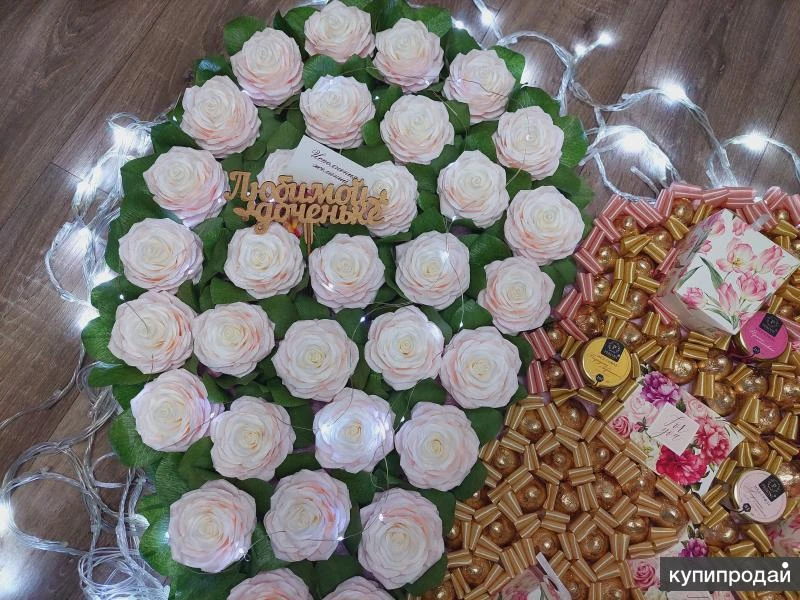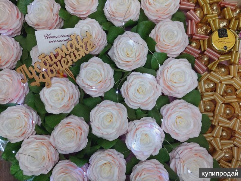 Добро пожаловать в мою мастерскую Свит-дизайна. Меня зовут Антонина. Я - бумажный флорист? Оригинальные букеты, Вы можете преподнести в качестве подарка или же украсить Ваш дом необычным цветочно-конфетным дизайном. Мои цветы никогда не завянут. Они из бумаги, но для меня они живые. В них столько тепла моих рук и души. Красивые букеты из роз ручной работы?, украшенные конфетками, зеленью и декором, топпером, гирляндой. Каждая роза уникальна, т.к. делается вручную и с любовью? Отличный подарок на любой праздник???⚘????❤?? Прекрасная альтернатива живым розам, которые будут радовать своей красотой очень долго?? Выполняю на заказ любое количество бутонов) Спешите заказывать букетики к праздникам??? Еще больше букетов в моем профиле? Цена зависит от размера и наполнения букета⚘️