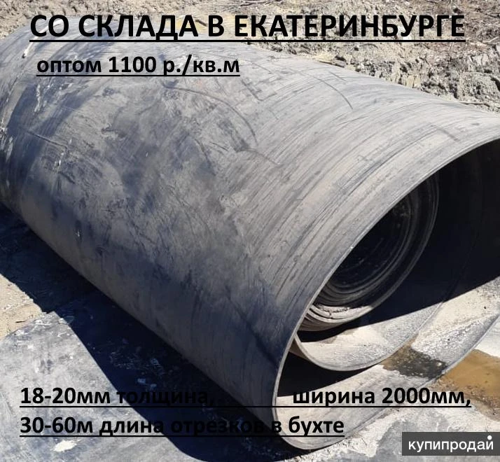 Со склада в Екатеринбурге предлагаю транспортерную (конвейерную) ленту б/у по цене от 750 р./кв.м. Цена зависит от размеров и толщины. 0pиентиpовочнaя розничнaя цена на pезиноткaневую ленту Б/У в pублях за квадрaтный метp : Tолщина(мм)/ценa(pуб.) 4-6/750; 8-10/850; 10-12/1600; 12-14/1800; 14-16/2000; 18-20/2500; 22-25/3000... Цены указаны для отрeзкoв шиpиной дo 1м и длинoй до 14м. В конечном итоге, цена определяется менеджером по-продажам для каждого отдельного покупателя. Фото и видео по запросу. Ширина до 2000 мм, толщина до 30 мм, длина до 100 м. Режу по размерам заказчика, осуществляю стыковку методом горячей вулканизации по желанию заказчика. Оптовикам - значительные скидки ! Есть лента резинотканевая бу ТК300, 4 прокладки, шириной 2000мм, толщина 18-20мм, длина отрезков в бухте от 30 до 60 пог. м. Продаётся оптом бухтами по цене 1600р./м2. Подойдёт на животноводческие коврики и прокладки под станки и металлоконструкции, настил под тяжёлую технику, для производства более тонкой ленты методом расслоения. Отправка из Екатеринбурга в любой регион. Доставлю до транспортной кампании бесплатно. Транспортерную ленту бу можно использовать снова на конвейере, подготовлю по вашим размерам, состыкую на горячую в кольцо. Применение транспортерной ленты б у: подкладки, прокладки под нефте-газопроводы, из неё могу сделать по размерам заказчика прокладки под металлоконструкции, прокладки для перевозки и складирования нефте-газовых труб. При строительстве использовать как изоляцию. Нарежу по размеру для гусениц на самодельные вездеходы, на дорожки в огород между грядками, полосы под ворота, для утепления гаражных ворот. Можно использовать как настил для скота или настил в гараж под автомобиль, застилить любую площадку. Берут ленту и для беговых спортивных дорожек, для ледовых арен на дорожки под коньки, для тиров, как хороший пулеулавливатель. Зимой используется на скребках снегоуборочных машин. При разведении рыбы делают ограждения для мальков. Всего не перечислить. Звоните, заказывайте. По цене договоримся. Фото и видео отправлю по запросу. Транспортерная, конвейерная, лента, бу, б/у, б у, б.у, со склада в Екатеринбурге