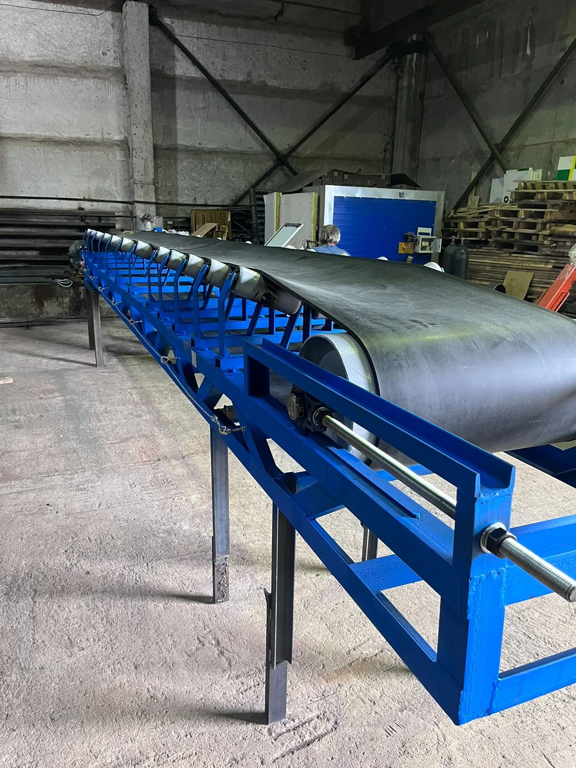 - Опции: Поддон, опорные ролики, верхний кожух, кожух двигателя, скребок, реверс, педаль управления, концевые выключатели, патрубки для обдува, загрузочный бункер.
