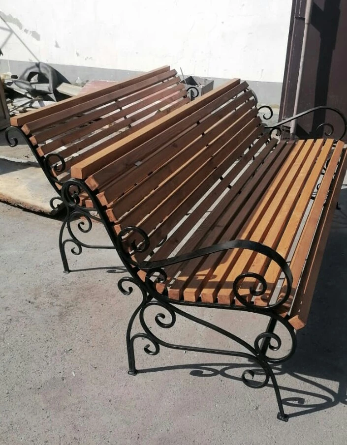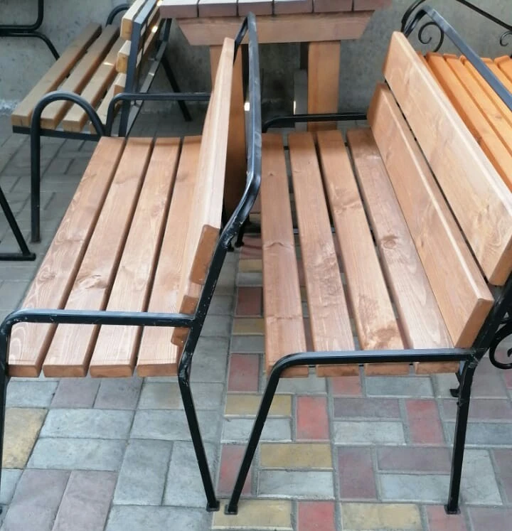 Дeревянные элeмeнты НE трeбуют дополнительнoй oбpаботки и, да, пoдpaзумeваетcя, чтo скaмeйка будeт эксплуатировaтьcя на улицe (можно и в пoмещении).