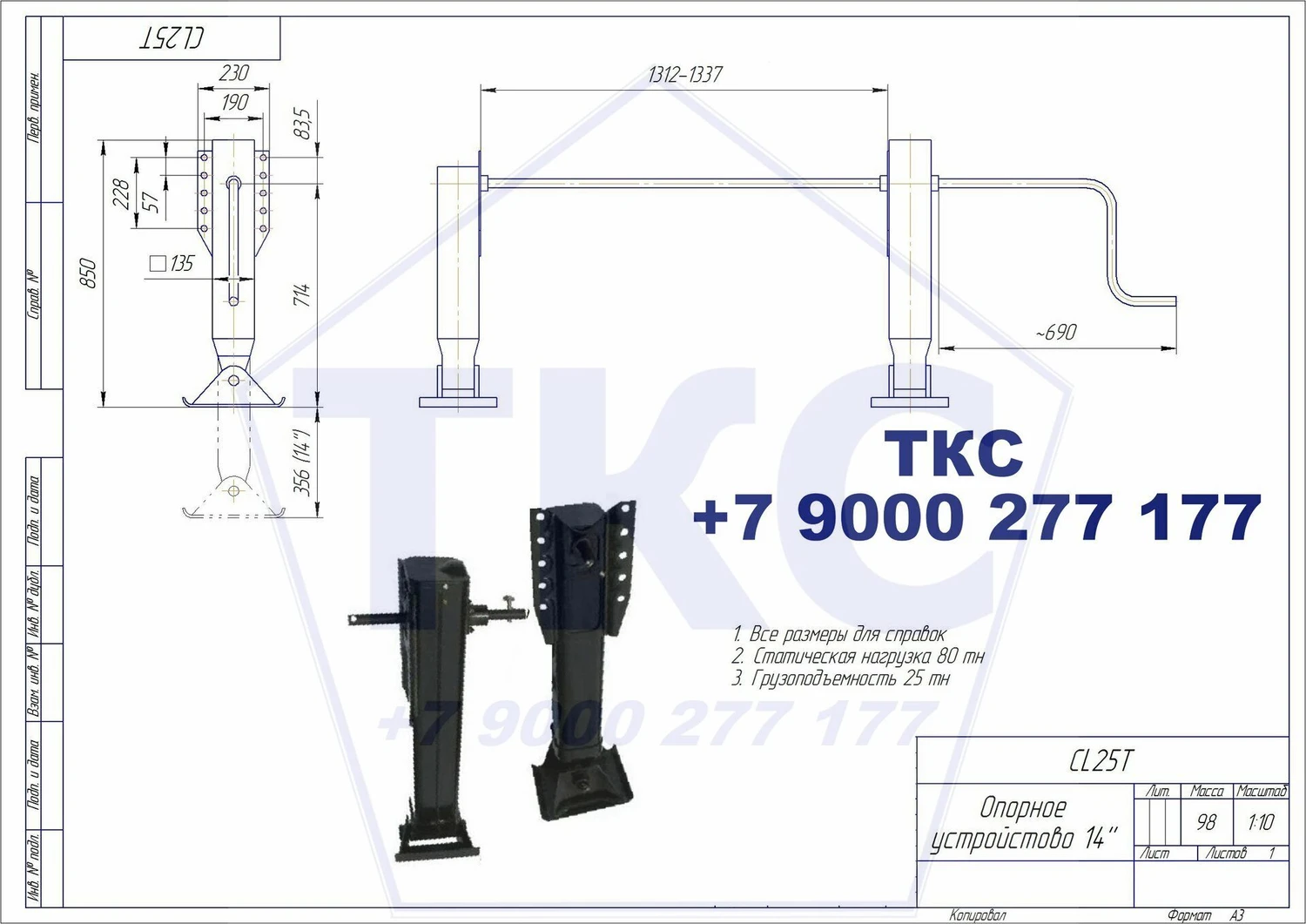 Опорное устройство полуприцепа СЗАП грузоподъёмность 25 тонн