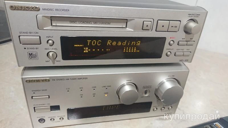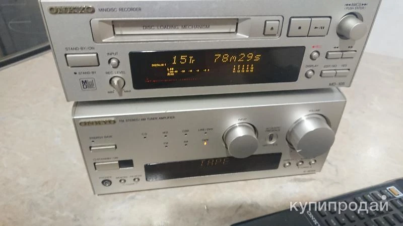 Комплект музыкальный Onkyo Отправка в регионы после оплаты Торга -неетт Цена за всё 30000 руб Вся аппаратура на 100 вольт В комплекте: 1) ONKYO MD -105X Минидисковая дека 2) Onkyo - R-805X ресивер 3) Пульт RC - 378S Производство Япония. Комплект. Пишет. Играет. Забавный малыш - но всё что надо у него есть Радио FM: 87,9 - 107,9 МГц. Усилитель. MD дека. Может работать с одного пульта по шине R-1 Все инструкции есть в интернете без проблем. Состояние рабочее Onkyo - R-805X ресивер Питание 100 вольт Динамическая выходная мощность 2 х 24 Вт при 4 Омах 2 X 17 Вт при 8 Омах Регулятор тембра Секция Тюнера Диапазон настройки FM: 87,9 - 107,9 МГц (шаги 200 кГц) Размеры (W ×H ×D) 205 × 91 × 302 мм Вес 3.4кг ONKYO MD -105X Минидисковая дека ( МОЖНО ИСПОЛЬЗОВАТЬ ЕГО САМОСТОЯТЕЛЬНО) Цифровая аудиосистема MiniDisc Перезапись . Стирание. Название трека Название мелодии Система считывания сигналов. Выход аналоговый и оптический Оптический бесконтактный Время записи Стерео: Макс. 80 мин. В комплекте 1 Минидиск ( MD -диска ) Количество каналов 2 (стерео) Частотная характеристика 10 Гц-20 кГц (±0,5 дБ) Размеры (W ×H ×D) 205 ×76 ×287 мм Вес 2,3 кг