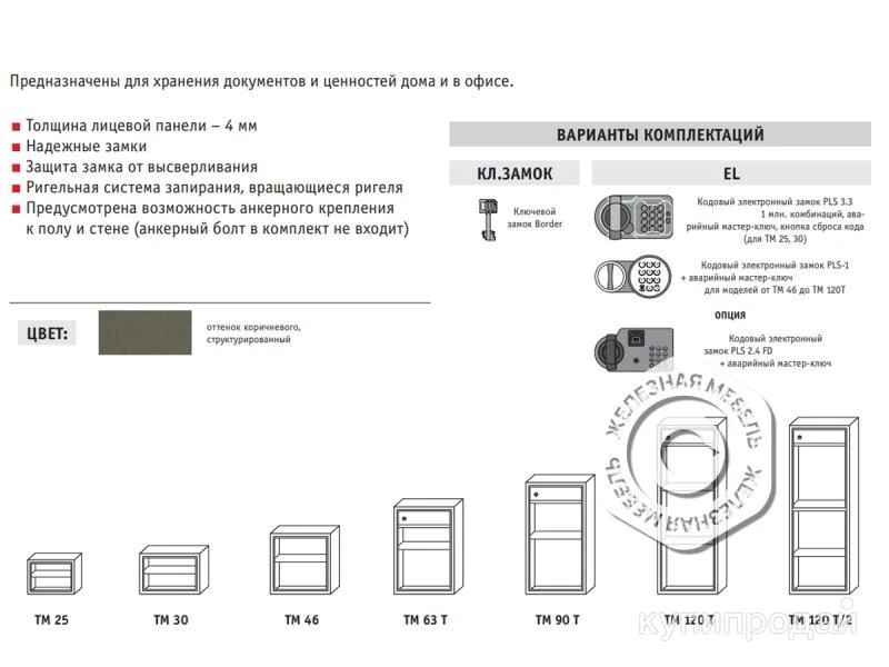 Новый сейф в заводской упаковке. Продажа от производителя с гарантией. Сейф Aiko TM-63T – мебельный сейф для хранения денег, документов, ценных вещей в квартире, частном доме, офисе. Сейф компактный, при этом взломостойкий: класс защиты S1. Особенности бухгалтерского сейфа Aiko TM-63T: ✅размеры внешние ВхШхГ - 630х440х355 мм; ✅размеры внутренние ВхШхГ - 500x436x301 мм; ✅вес 29 кг; ✅объём 66 литров; ✅класс взломостойкости S1 по ГОСТ Р 55148-2012; ✅защита замка от высверливания; ✅комплектуются ключевым замком; ✅предусмотрена возможность анкерного крепления к полу и стене; ✅цвет коричневый с эффектом молотковой эмали. Линейка мебельных сейфов AIKO TM включает модели высотой до 1200 мм. С кодовыми и ключевыми замками. Звоните или пишите, менеджер поможет выбрать подходящую модель для ваших задач. ❗ ОБРАТИТЕ ВНИМАНИЕ: в связи с постоянным ростом цен на металл цены в ближайшее время могут вырасти. Поэтому успейте купить мебельный сейф Aiko TM-63Т для квартиры и дома до подорожания! ✅Снизим цену, если найдёте дешевле! ✅Продажа от производителя ✅Официальная гарантия завода ✅У нас большой склад и постоянное наличие большинства товаров ✅Быстрая доставка ✅Работаем с 2002 года ✅Продажа оптом и в розницу ❤️ Добавьте это объявление в избранное, чтобы не потерять!