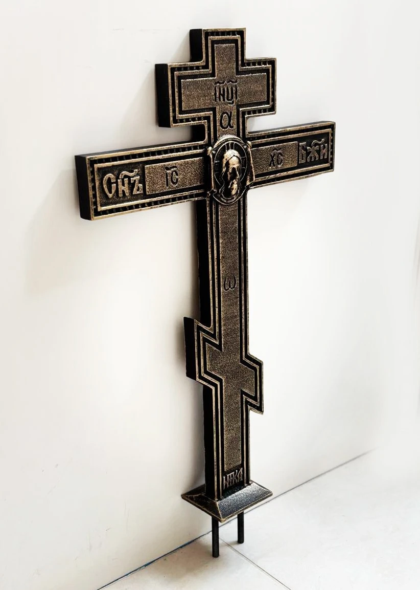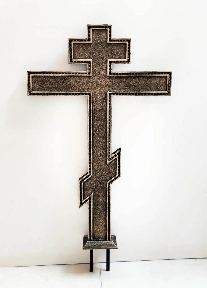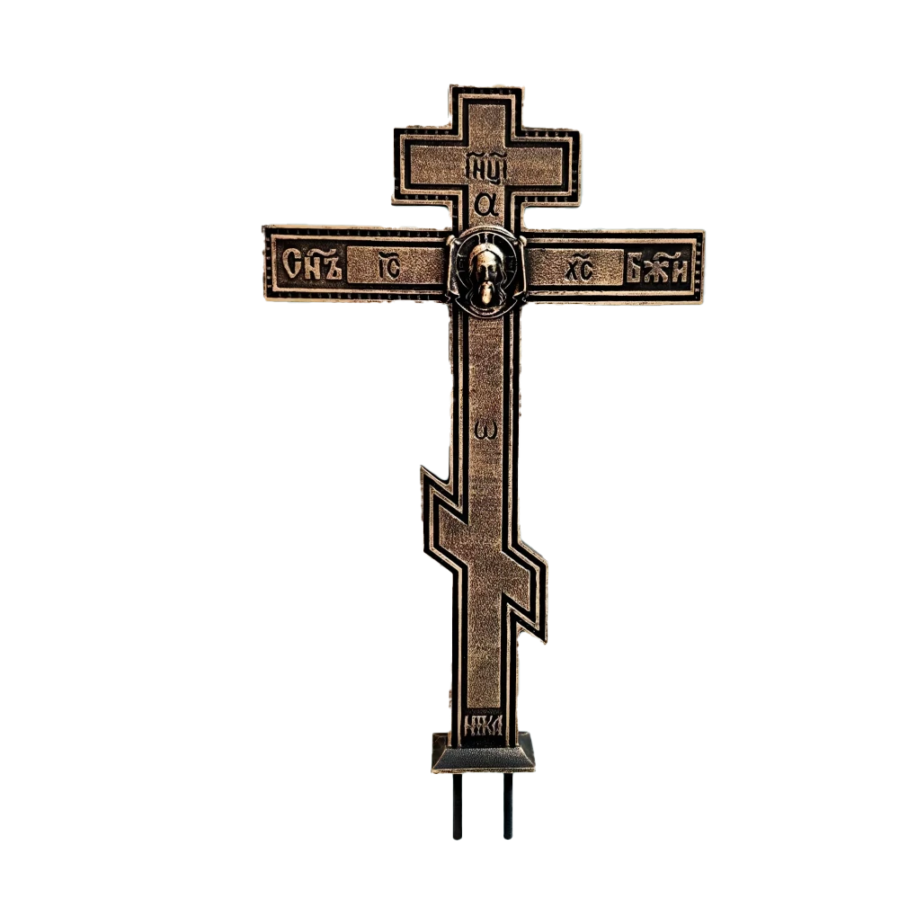 - Для установки креста в качестве накладки на памятник, шпильки вмонтированы на обратной стороне креста.