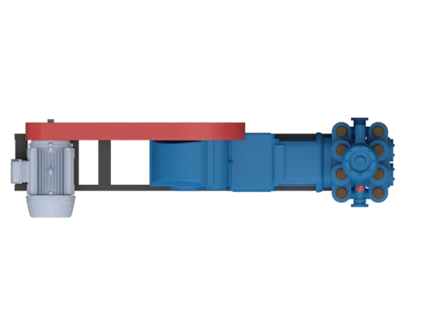 Привод вращения трансмиссионного вала насоса осуществляется от взрывозащищённого электродвигателя через клиноременную передачу. Насос поршневой крепится к раме агрегата с помощью болтов. Электродвигатель установлен на плите, которая крепится к раме агрегата болтами. На раме агрегата предусмотрены пазы под крепежные болты плиты электродвигателя для регулировки натяжения ремней клиноременной передачи.