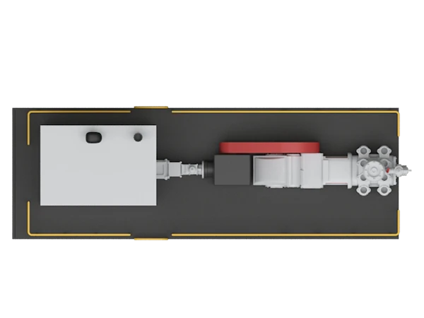 Привод вращения трансмиссионного вала насоса осуществляется от взрывозащищенного электродвигателя через клиноременную передачу. Насос поршневой крепится к раме агрегата с помощью болтов. Электродвигатель установлен на плите, которая крепится к раме агрегата болтами. На раме агрегата предусмотрены пазы под крепежные болты плиты электродвигателя для регулировки натяжения ремней клиноременной передачи.
