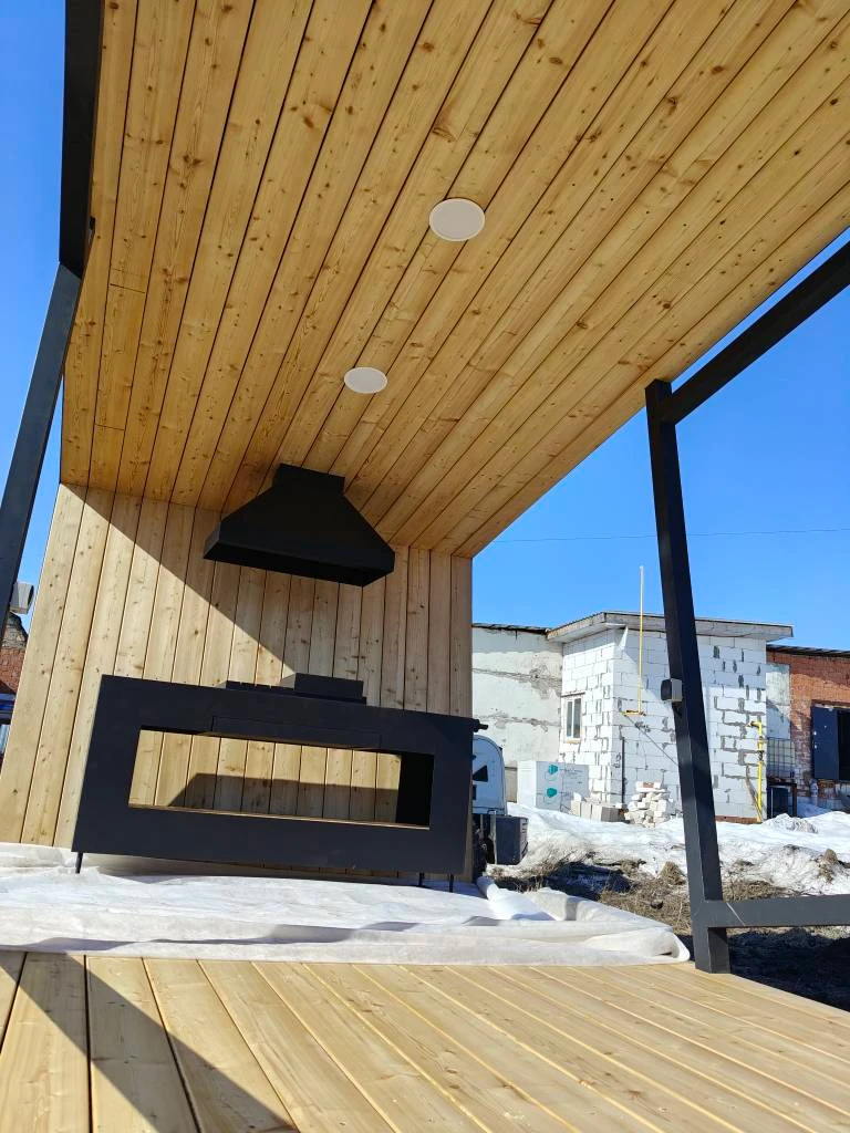Долговечный металлический каркас обшитый лиственницей и обработан маслом.