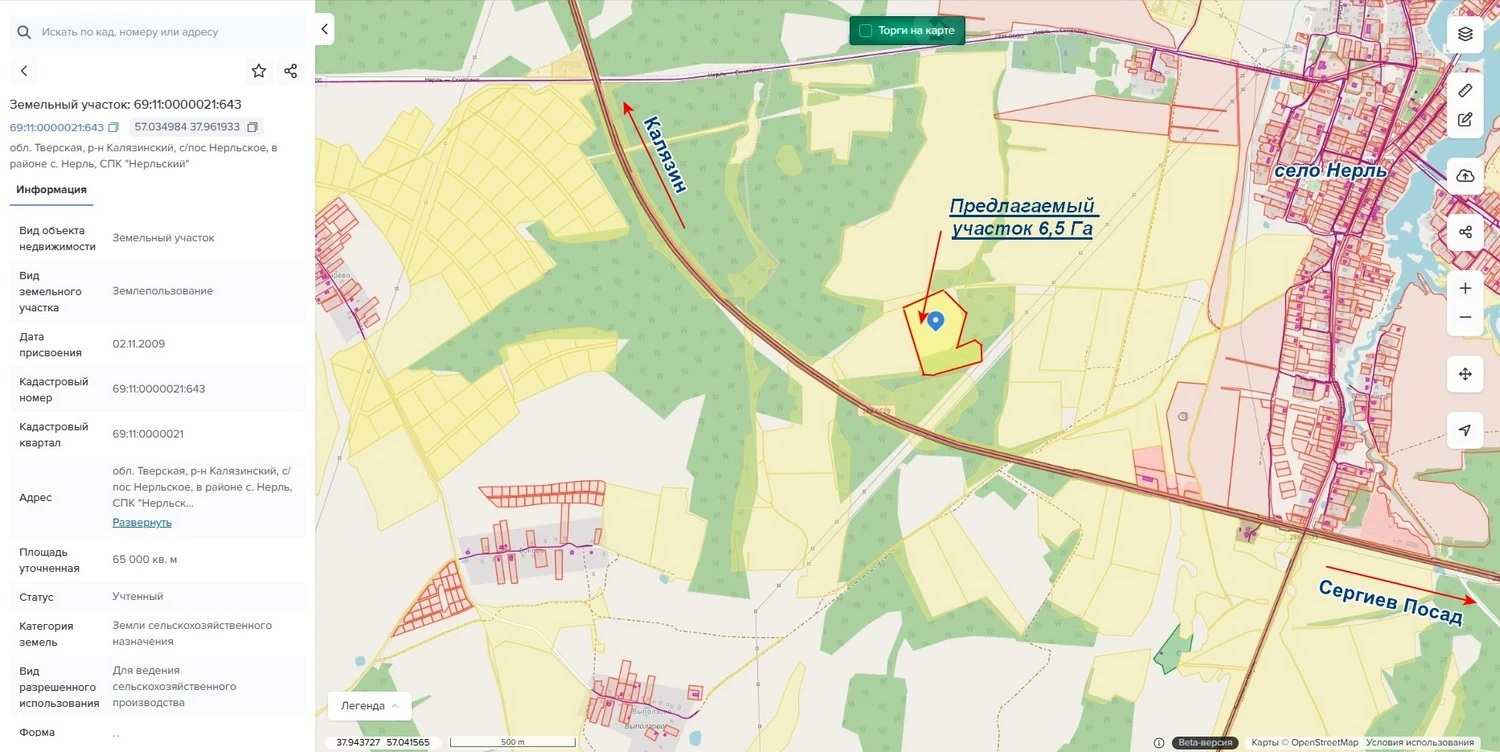 Предлагается к продаже земельный участок вблизи села Нерль Нерльского сельского поселения Калязинского района Тверской области общей площадью 6,5 га (650 соток). К № 69:11:0000021:643.. Категория земель – земли сельскохозяйственного назначения. Вид разрешенного использования – для ведения сельскохозяйственного производства. Цена - 1 200 000 рублей (разумный торг). Продается как единый массив. Очень красивые места. До села Нерль 1,0 км. Большое село. Есть магазины, медпункты, почта, школа и т.д. Граница участка до трассы Калязин – Сергиев Посад в 230 метрах. Электричество проходит по границе участка. Возможность подключения есть. До реки Нерль – 1 км. 700 метров. До гор. Калязина 28 км., до МКАД 145 км. Приятное место для коттеджного поселка, базы отдыха (аренда домов), фермерского хозяйства и т.д. Один собственник. Документы готовы.