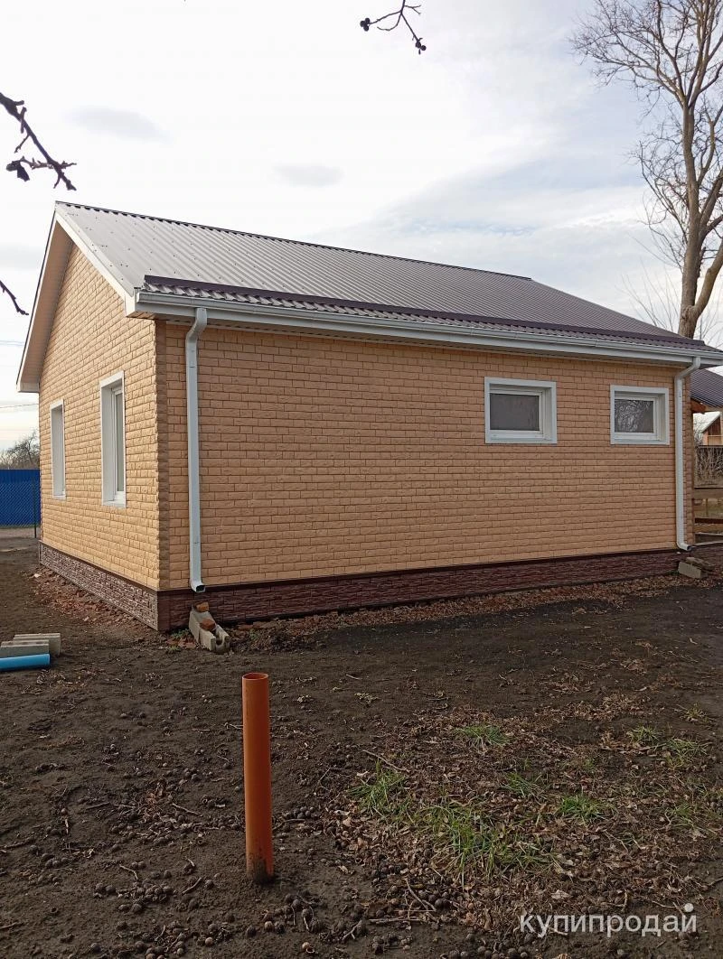Дом из керамзитового блока с утеплением базальтовой ватой с влаговетрозащитной пленкой. Облицован сайдингом под камень. Перекрытие с утеплёнием 150 мм. Две спальни по 13 м КВ., гостиная-столова 23 м.кв. , санузел 5.1 м КВ.,прихожая 6,1 м КВ. Терасса 20 м КВ. Скважина воды 30м, септик , электричество. Площадка для 2 а/м. Дом с предчистовой отделкой. Земельный участок 5,7 сот, в шаговой доступности магазины, парикмахерская ,автобусная остановка. Рядом берег реки Кубань. .
