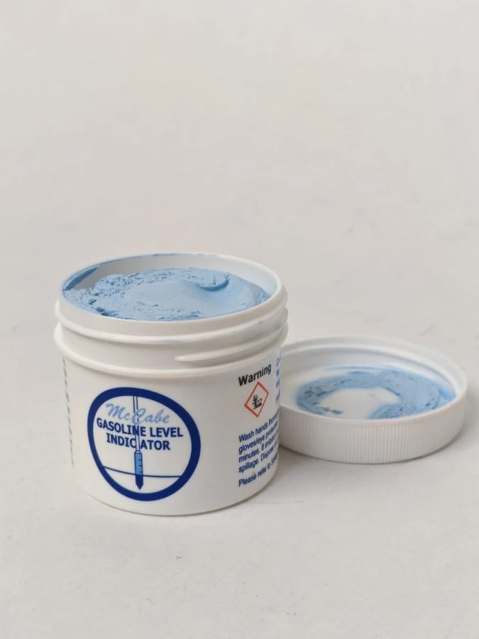 Бензочувствительная паста McCabe представляет собой светло-голубую пасту, меняющую цвет при соприкосновении с топливом.