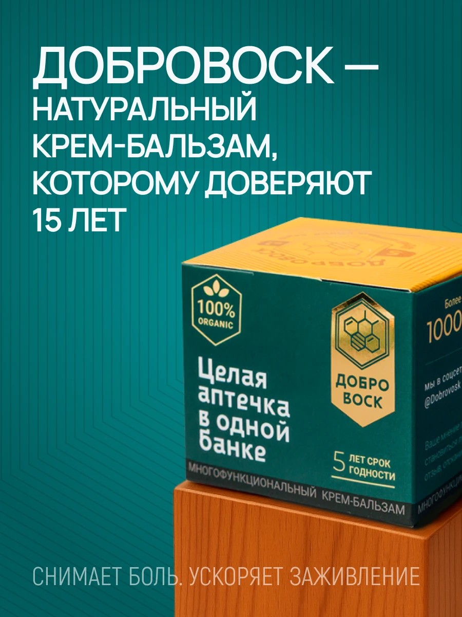 Натуральный крем-бальзам ДоброВоск 5 в 1 – это инновационное аптечное средство для здоровья суставов, мышц и полноценного ухода за кожей. Созданный на основе пчелиного воска, целебных трав и эфирных масел, крем обладает многофункциональным действием и подходит для решения широкого спектра проблем.