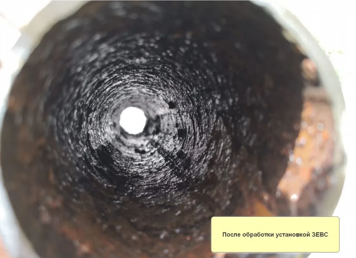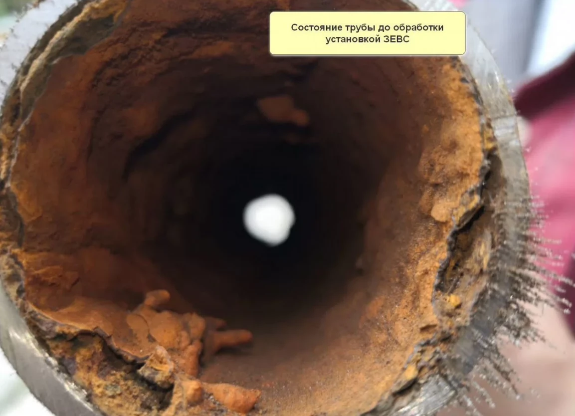 На фотографиях реальные фотографии до прочистки и после прочистки установкой Зевс