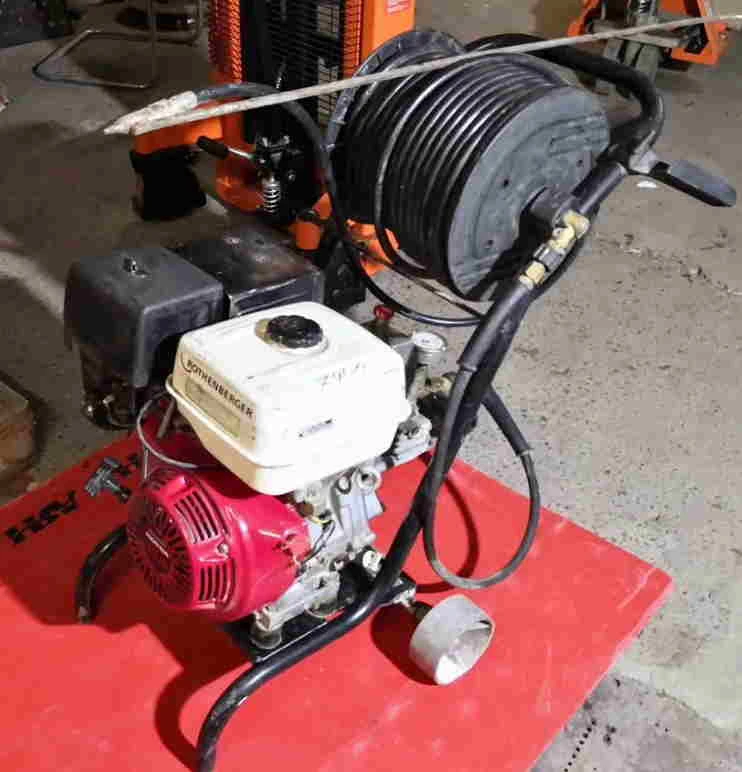 Гидродинамическая машина Rothenberger HD 19/180 B - бензиновая гидродинамическая машина для прочистки труб и очистки поверхностей с помощью высокого давления. Применяется для прочистки канализационных труб диаметром до 200 мм на глубину до 40 м. Так же подходит для очистки любых поверхностей от стойких загрязнений. Максимальное рабочее давление 180 бар, производительность 19 л/мин. Мощность двигателя HONDA составляет 8,1 кВт. Машина оснащена функцией плавной регулировки давления, самовсасывающим насосом до 2 метров, колесами с пневмошинами и встроенным креплением для промывочного пистолета. Барабан со шлангом высокого давления 40 м в комплекте.