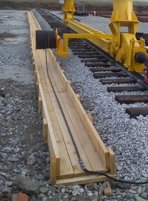 Для увеличения срока эксплуатации кабеля питания козлового, башенного, портального крана и его защиты от механических повреждений устанавливается деревянный или железобетонный кабельный лоток на всю длину подкранового пути.