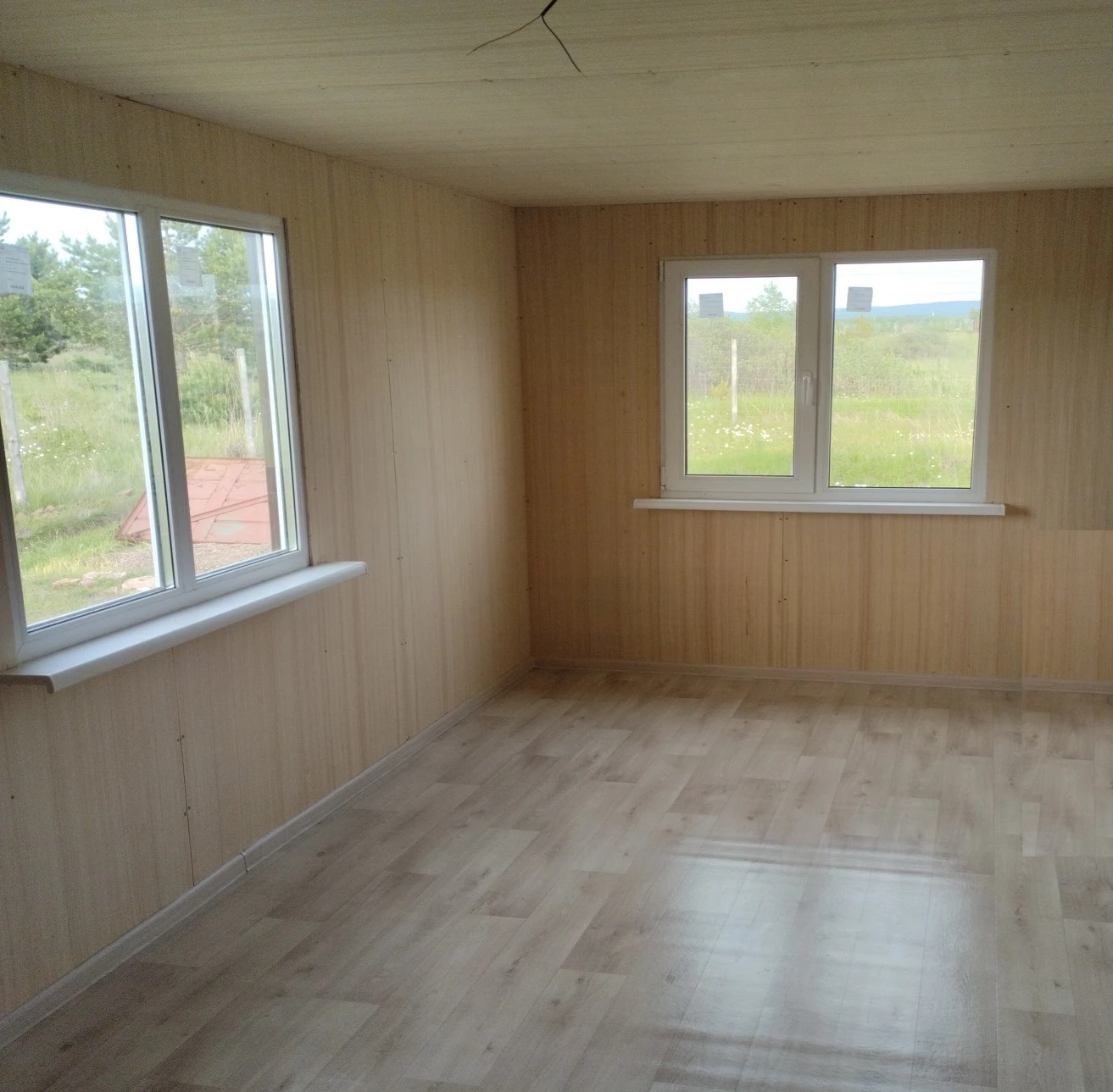 Вагончик мобильный утепленный 2,9м.*6м., предназначен для дачи, базы отдыха, временного проживания. Помещение с электрооборудованием, основание –объемный металлкаркас сваренный из проф.трубы с подъемными крюками, внутренняя высота потолка -2,2м.. Наружная отделка -металл.профлист(сайдинг), днище- закрыто листовым металлом от грызунов и сырости. Внутренняя отделка- дерево, линолеум, окнаПВХ, электрика. Не требует фундамента. Возможно изготовить по Вашему желанию другое помещение, любых - размеров, отделки(внутренней и наружной), этажности, с сан/техникой, печным отоплением, любым количеством комнат, итд.. Установка на место, Подготовка площадки, подключение к сетям. (дом мобильный, т.е. может многократно перемещаться по объектам, без вреда для конструкции).