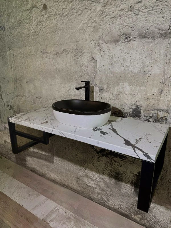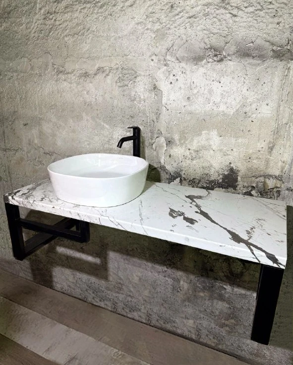Фото 2-3: Подвесная столешница с 1-й раковиной, с держателем для полотенец, материал столешницы - водоотталкивающее ДСП, SLOTEX, брекчия капрая, размер 120*50, цена 29 900₽.