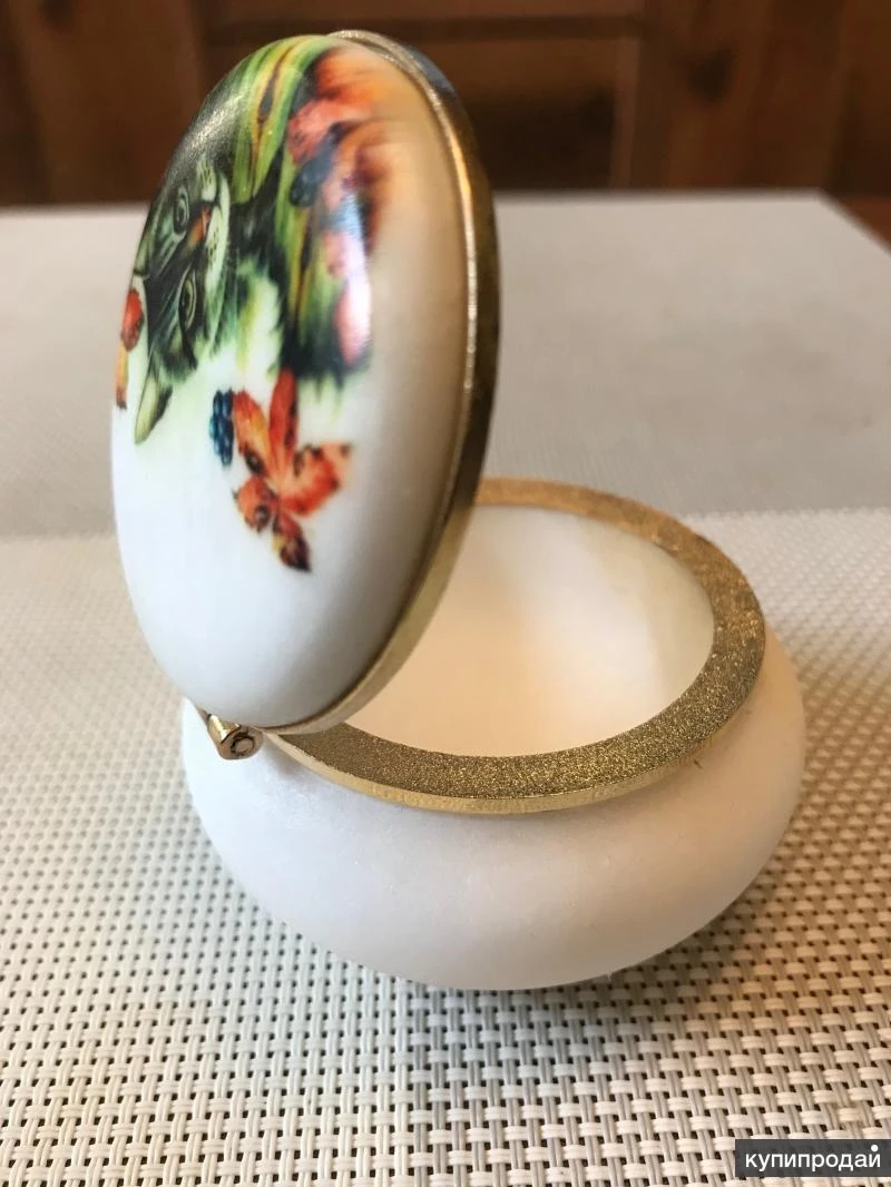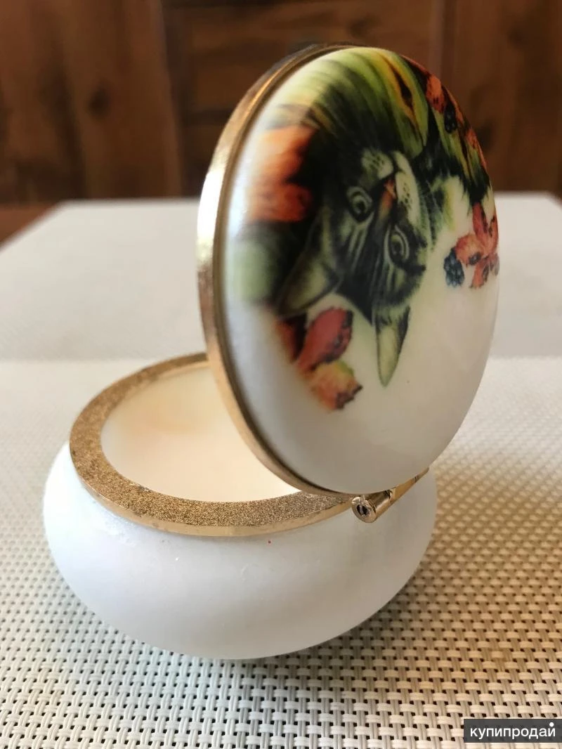 Шкатулка "Серый кот". Изделие новое. Ручная работа. Изготовлена из натурального камня Селенит. Прекрасный подарок для тех, кто ценит красоту, стиль, и верит в силу камней. По приданиям, селенит – это главный семейный камень, камень удачи, хранитель семейного очага, обеспечивающий уют, комфорт и хорошие отношения в семье. Представляет собой полупрозрачный кристалл. Считается, что селенит имеет огромную силу и энергию, поэтому обладает целебными свойствами : уравновешивает давление, лечит головную боль, снимает нервную нагрузку. Во многих культурах этот минерал ассоциировался с женским началом. Его сияние сравнивают со светом луны, поэтому селенит называют лунным камнем. Единственное официальное месторождение находится на Урале, в Пермской области. Красивая, стильная вещь, хороший подарок. Размеры шкатулки : диаметр - 7,0 см, высота - 4,0 см. Артикул изделия - 21.42г. Состояние – изделие новое. В наличии, в Москве. Любые способы доставки.