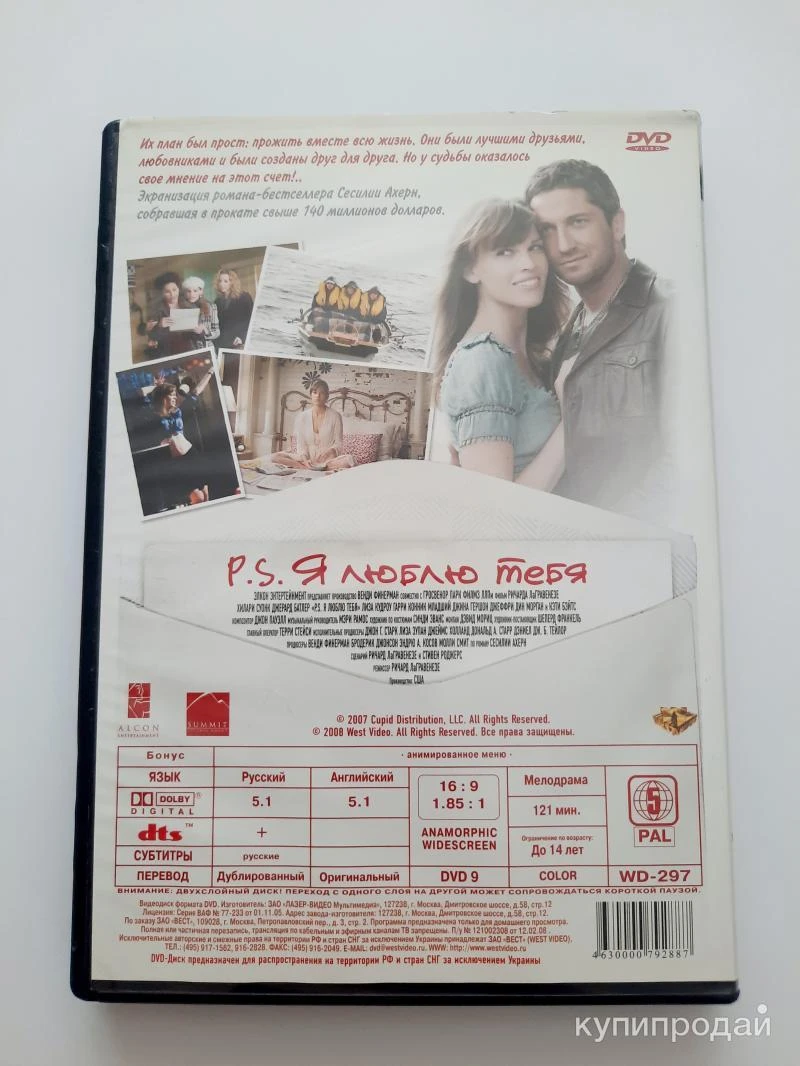 DVD фильм "P.S. Я люблю тебя". Б/У. Отправка почтой России, Яндекс доставкой или Boxberry по полной предоплате, почтовые расходы за счет покупателя. Без торга!