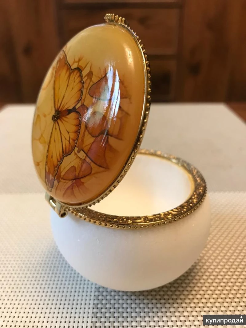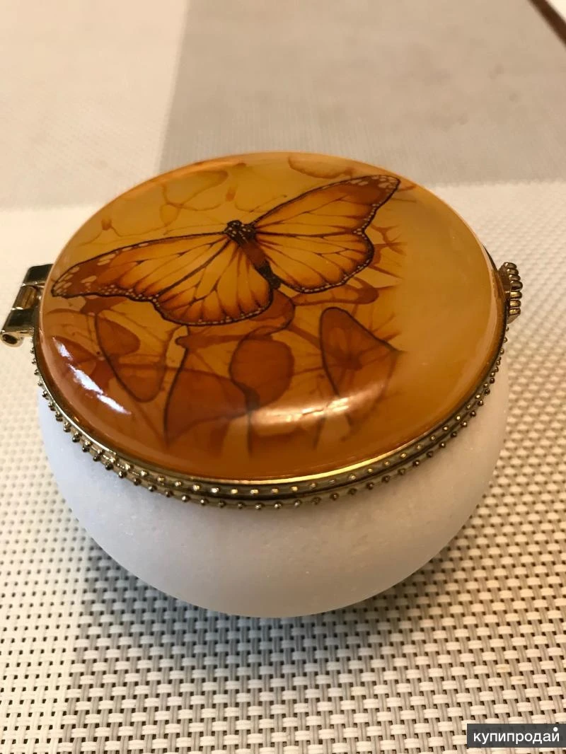 Шкатулка "Бабочка". Изделие новое. Ручная работа. Изготовлена из натурального камня Селенит. Прекрасный подарок для тех, кто ценит красоту, стиль, и верит в силу камней. По приданиям, селенит – это главный семейный камень, камень удачи, хранитель семейного очага, обеспечивающий уют, комфорт и хорошие отношения в семье. Представляет собой полупрозрачный кристалл. Считается, что селенит имеет огромную силу и энергию, поэтому обладает целебными свойствами : уравновешивает давление, лечит головную боль, снимает нервную нагрузку. Во многих культурах этот минерал ассоциировался с женским началом. Его сияние сравнивают со светом луны, поэтому селенит называют лунным камнем. Единственное официальное месторождение находится на Урале, в Пермской области. Красивая, стильная вещь, хороший подарок. Размеры шкатулки : диаметр - 7,0 см, высота - 5,5 см. Артикул изделия - 21.19а. Состояние – изделие новое. В наличии, в Москве. Любые способы доставки.