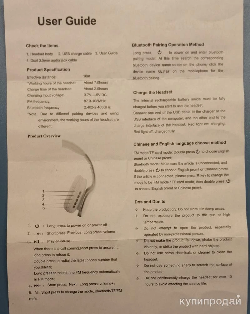 Пользовался мало и только дома - краска не затёрта, царапин нет, чуть затерт амбушюр. Аккумулятор нормально работает. Микрофон и остальные примочки не проверял, потому что не пользовался ими. Про низы и верха не спрашивайте - слушал только разговорную речь. Не отправляю ни почтой, ни курьерами. Оплата только наличными после проверки работоспособности. Название бренда centechia Функции Гарнитура для телефона, Спортивные Китай Сертификация NONE Защита от влаги Да Подключение Беспроводной Версия Bluetooth 4.0 Дальность работы 10м Особенности Водонепроницаемый, С микрофоном, Активное шумоподавление Конструкция Headphone С микрофоном Да Беспроводное подключение Да Тип беспроводного подключения bluetooth Принцип звучания Динамические Диапазон 20-20000