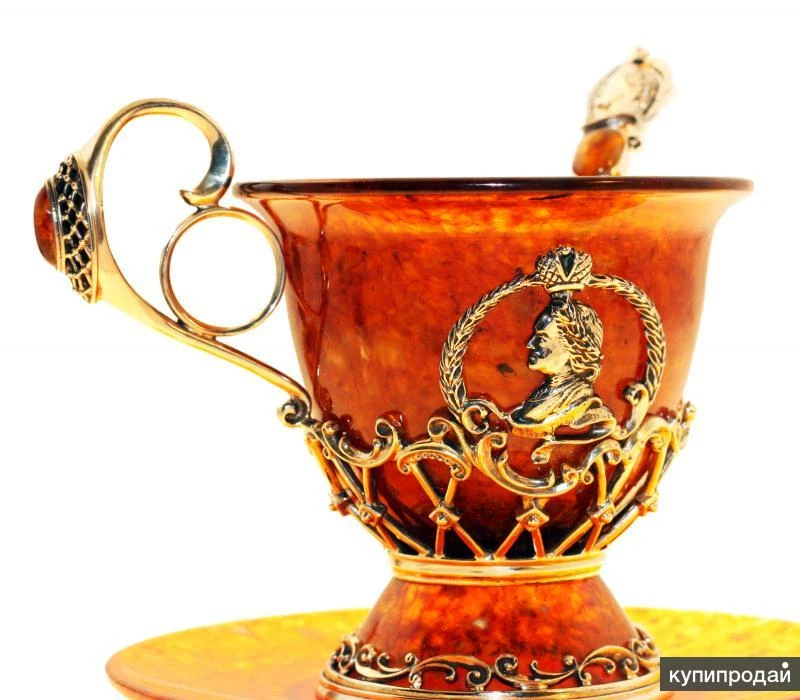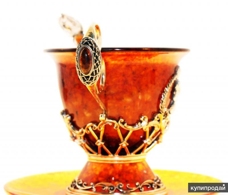 Описание: Чайный набор состоит из чашки, блюдца, ложечки и подарочного футляра. Высота чашки - 9,5 см, диаметр 9,5 см, ёмкость - 200 мл. Длина ложечки - 13,0 см, диаметр блюдца - 14-15 см. Состав: натуральный балтийский янтарь,белая ювелирная бронза, под заказ может быть изготовлен из благородного серебра 875 пробы. Может поставляться наборами на 1, на 2, на 3 и на 6 персон. Также прекрасно комбинируется с чайной чашкой "Екатерина". Мы рекомендуем пить чай из этой чашки температурой не более 80 гр. Поставляется в презентабельном подарочном футляре, который входит в стоимость изделия. Оттенок янтаря может отличаться от представленного на фото.