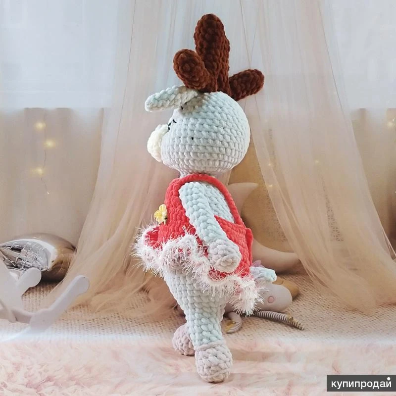 ? Дарите родным и близким радость! ? ? Вязаная игрушка оленёнок Оленька ручной работы замечательный и оригинальный подарок для детей и взрослых! ? Милая игрушка Оленька подарит радость и добавит уют в доме. Такой подарок обязательно вызовет улыбку на лице и поднимет настроение. ❗️ Игрушка связана для Вас с любовью вручную из гипоаллергенной и безопасной для детей плюшевой пряжи, наполнитель холлофайбер, глазки на надежных винтовых креплениях. ? Прекрасно выглядит в качестве предмета интерьера. ↕️ Рост 45см. ❗️ Качественная ручная работа! ? Вяжу для Вас игрушки, пледы и подушки с любовью! ? ? Самовывоз: Москва ?♂ Доставляем курьером по г.Москва в пределах МКАД ? Доставка "Почта России", "СДЭК" ❗️ Еще больше игрушек, подушек и пледов в моём интернет магазине. Ссылка (Перейти на сайт) под отзывами (смотрите справа).
