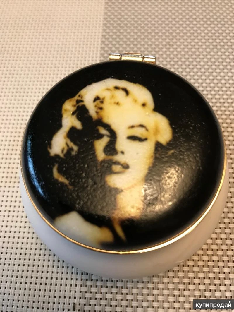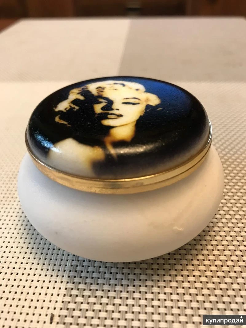 Шкатулка "Мэрилин Монро". Изделие новое. Ручная работа. Изготовлена из натурального камня Селенит. Прекрасный подарок для тех, кто ценит красоту, стиль, и верит в силу камней. По приданиям, селенит – это главный семейный камень, камень удачи, хранитель семейного очага, обеспечивающий уют, комфорт и хорошие отношения в семье. Представляет собой полупрозрачный кристалл. Считается, что селенит имеет огромную силу и энергию, поэтому обладает целебными свойствами : уравновешивает давление, лечит головную боль, снимает нервную нагрузку. Во многих культурах этот минерал ассоциировался с женским началом. Его сияние сравнивают со светом луны, поэтому селенит называют лунным камнем. Единственное официальное месторождение находится на Урале, в Пермской области. Красивая, стильная вещь, хороший подарок. Размеры шкатулки : диаметр - 7,0 см, высота - 4,0 см. Артикул изделия - 21.47г. Состояние – изделие новое. В наличии, в Москве. Любые способы доставки.