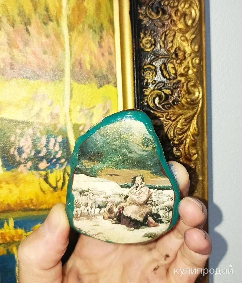 Описание сувенира: Это уникальное произведение искусства, созданное вручную на основе натурального камня. Изображение на камне получено с помощью комбинированной техники: фотопечати и ручной росписи акриловыми красками. Мастер скрупулезно подобрал цвета и детали, чтобы передать всю глубину и красоту запечатленного момента. Особенности: * Индивидуальность: Каждый камень имеет свою неповторимую текстуру и форму, что делает каждое изделие абсолютно уникальным. * Материалы: Использование натурального камня придает изделию природную энергию и красоту. Акриловые краски обеспечивают яркость и долговечность изображения, а ювелирная смола надежно защищает его от внешних воздействий. * Авторская работа: Это не просто сувенир, а настоящее произведение искусства, созданное талантливым мастером. Вы можете увидеть другие работы автора в его Instagram-аккаунте Artstones. Что делает это изделие особенным: * Сочетание природы и искусства: Сочетание натурального камня и ручной росписи создает гармоничный баланс между природной красотой и человеческим творчеством. * Эксклюзивность: Это не массовое производство, а авторская работа, которую вы не встретите больше нигде. * Оригинальный подарок: Такой сувенир станет прекрасным подарком для себя или близких, подчеркнет вашу индивидуальность и станет настоящим украшением любого интерьера. Дополнительная информация: "Этот изящный овальный камень с гладкой поверхностью украшен завораживающим пейзажем горного озера. Нежно-голубые оттенки воды контрастируют с белыми вершинами гор, покрытыми снегом. Мастер с помощью акриловых красок создал эффект мерцания и глубины небесного свода. Ювелирная смола придает изображению блеск и защищает его от царапин. Это произведение искусства станет прекрасным дополнением к вашей коллекции или оригинальным подарком для любителей природы."