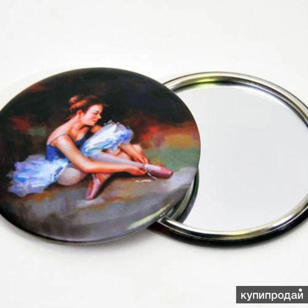 Зеркальце -- то что должно быть в каждой женской сумочке... Круглое, миниатюрное зеркальце «Балерина» в мешочке с сердечками - приятный и неожиданно милый сувенирчик даме сердца, дочке или юной коллеге. Стоимость: 160 руб./экз. Оптом дешевле. * * * Балет -- настоящее достояние России, в котором находят свое отражение её национальные черты. Красота, грациозность, вдохновение и... тяжелый труд – все словно отразилось в юной балерине на этом зеркальце