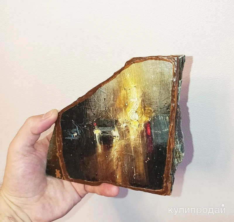 Описание сувенира: Уникальное произведение искусства на натуральном камне. Это не просто фотография, а настоящая картина, созданная с помощью комбинации фотопечати и акриловой живописи. Изображение напечатано на натуральном камне, что придает ему особый шарм и текстуру. Ключевые особенности: * Материал: Натуральный камень * Техника: Комбинированная фотопечать и акриловая живопись * Сюжет: Городской пейзаж с вечерней подсветкой (проезжающие машины) * Размер и форма: Небольшой, неправильной формы камень * Автор: Artstones Почему это интересно: * Оригинальность: Сочетание традиционной живописи и современных технологий придает работе уникальный вид. * Натуральность: Использование натурального камня делает каждый экземпляр неповторимым. * Эмоциональность: Вечерний городской пейзаж создает атмосферу уюта и спокойствия. * Компактность: Небольшой размер позволяет легко разместить работу в любом интерьере. Где можно использовать: * В качестве декора: Отлично подойдет для украшения интерьера дома или офиса. * В качестве подарка: Оригинальный и запоминающийся подарок для близких и друзей. * Для создания коллекции: Может стать началом коллекции произведений искусства на натуральном камне. Дополнительная информация: Для получения более подробной информации о художнике, технике создания и других работах автора можно обратиться к мастерской Artstones. Вывод: Этот сувенир - это не просто безделушка, а настоящее произведение искусства, которое будет радовать глаз и создавать уют в вашем доме. Дополнительные вопросы: * Хотели бы вы узнать больше об авторе этой работы? * Интересуют ли вас другие работы, выполненные в подобной технике? * Хотите узнать, где можно приобрести подобные сувениры?