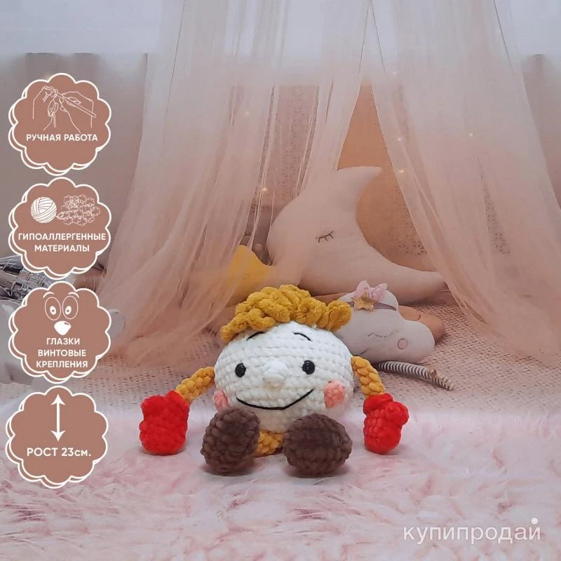 ? Дарите родным и близким радость! ? ? Вязаная игрушка Снежок ручной работы замечательный и оригинальный подарок для детей и взрослых! ? Мягкая игрушка представляет собой забавный и милый образ зимнего персонажа, который подарит радость и уют в доме. Такой подарок обязательно вызовет улыбку на лице и поднимет настроение. ❗️ Игрушка Снежок связана для Вас с любовью вручную из гипоаллергенной и безопасной для детей плюшевой пряжи, наполнитель холлофайбер, глазки на надежных винтовых креплениях. ? Прекрасно выглядит в качестве предмета интерьера. ↕️ Рост 23см. ❗️ Качественная ручная работа! ? Вяжу для Вас игрушки, пледы и подушки с любовью! ? ? Самовывоз: Москва ?♂ Доставляем курьером по г.Москва в пределах МКАД ? Доставка "Почта России", "СДЭК" ❗️ Еще больше игрушек, подушек и пледов в моём интернет магазине. Ссылка (Перейти на сайт) под отзывами (смотрите справа).