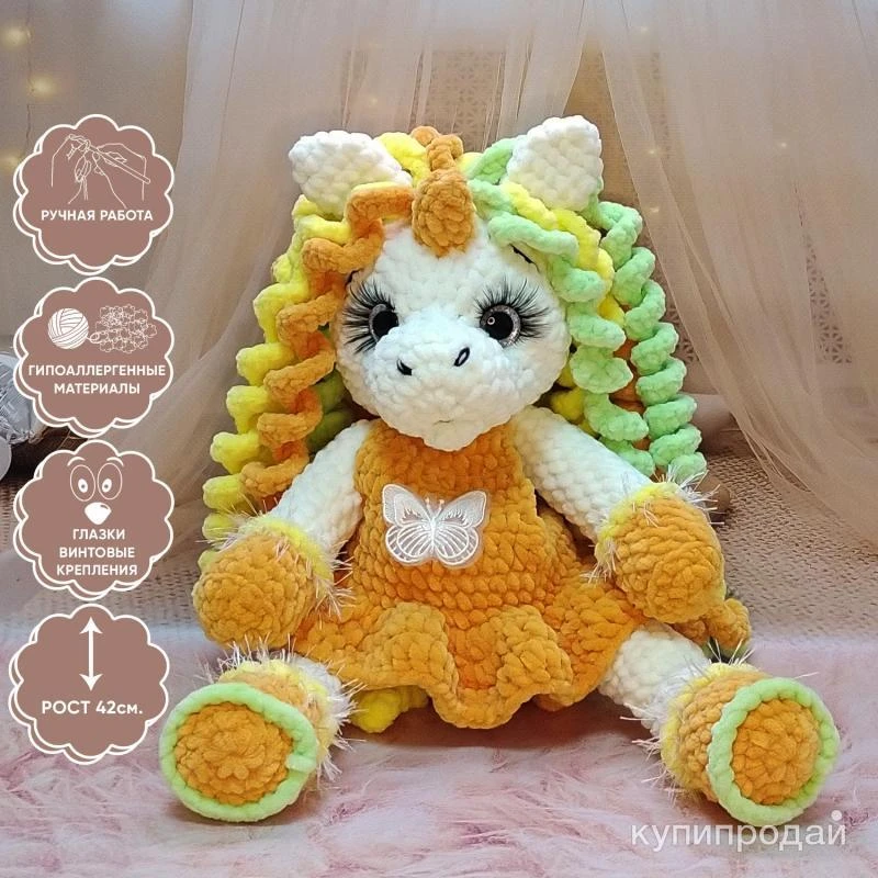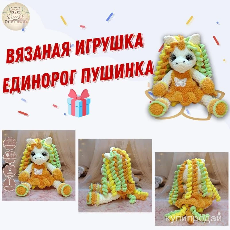 ? Мягкая игрушка Единорог Пушинка ? ? Ручная работа. Связана из гипоаллергенной и безопасной для детей плюшевой пряжи, наполнитель холлофайбер, глазки на винтовых креплениях. Стандарт OEKO-TEKS. Рост 42см. ? Игрушки связанные вручную несут в себе особую положительную ауру. В каждую игрушку вкладывается частичка души Мастера. ? Игрушки связаны с любовью! ? ? Всегда является актуальным подарком не только для детей, но и для взрослых. ? Мягкая игрушка Единорог Пушинка прекрасно выглядит в качестве предмета интерьера. ? Вязаная игрушка замечательный подарок для ребенка, Маме, любимой девушке. Друзьям: на 8 марта, 23 февраля, Новый год, День Рождения и просто без повода ? Дарите Родным и Близким радость ? ? Самовывоз: Москва. Бесплатно (предварительная договоренность) ?♂ Доставка курьером по г.Москва в пределах МКАД ? Доставка по России "Почта России", "СДЭК" ❗️ Еще больше игрушек, подушек и пледов в моём интернет магазине. Ссылка (Перейти на сайт) под отзывами (смотрите справа).
