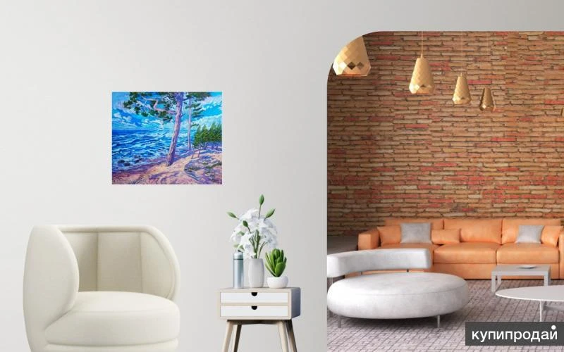 "Ветер Балтики", 50х60 см, холст, на подрамнике, масло. Художник В. Гальцова. Современный стиль, свежее звучание. Для дома, офиса, общественного места. Картина буквально светится. Замечено, что хорошо расслабляет и успокаивает, наполняет силой. Как ей это удается, непонятно, но факт остается фактом. Хоть и не скромно, но скажу- слышала от искусствоведа, что картина гениальна. В стильной белой современной раме. Сейчас находится в центре, на м. Чеховская. Можем встретиться там.