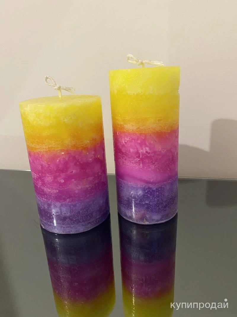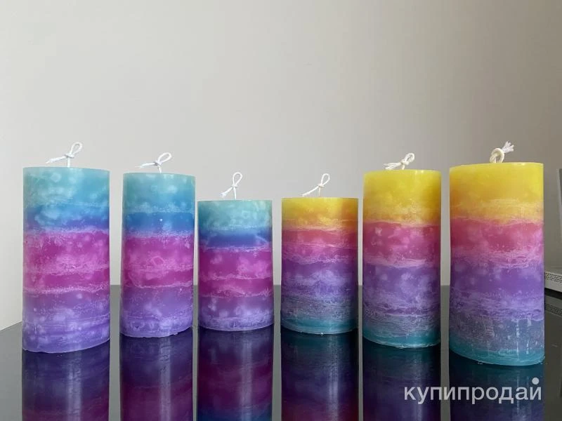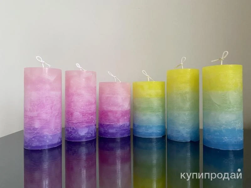 ?️ Дизайнерские свечи различных цветов "Радуга" мастерской © «YARA Candles»/«ЯРА Свечи» Цилиндрической формы Высота: 15 см и 14 см, диаметр: 7см и 8 см, Стоимость: 900р Ручная работа ?? Качественные, экологически чистые материалы Состав: Пищевой парафин П2, 100% хлопковый фитиль, свечной краситель и ароматизатор (при желании приобрести ароматизированные свечи) ? свечи очень устойчивы, поэтому могут стоять без подсвечников ? Используются для украшения интерьеров и различных мероприятий Время горения 35-45 часов, вес: 550 гр. По желанию покупателя возможны практически любые сочетания цветов и оттенков: Розовые, Голубые, Салатовые, Жёлтые, Зелёные, Красные, Синие, Фиолетовые, Бордовые, Серые, Белые и д.р. ? Возможна упаковка свечей в крафтовые пакеты, подарочные коробки, с лентами и открытками (по договорённости) ? Доставка: СДЭК (со скидкой -40%), Почта России, Яндекс и др. транспортными и курьерскими компаниями по выбору Покупателя ?? Самовывоз: Москва, ближайшие м. Новаторская, м. Калужская