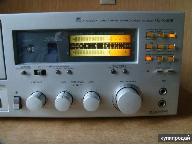 Вашему вниманию предлагается топовая, винтажная кассетная дека SONY TC-K80II в отличном косметическом и техническом состоянии. Дека из личной коллекции. Очень красивый аппарат золотой эры SONY стоивший на момент выхода 108 000y ( 81-я кстати в тот же год стоила 85 000у). Интересная модель с директ драйвом, редким эффектным жидкокристаллическим индикатором, программируемым поиском, сендаст-ферритовой головкой, подмагничиванием на 4 типа лент и т.д. Цвет -серебристый металлик . Вес 9 кг, . Напряжение 220v. Аппарат действительно редкий, особенно в таком коллекционном виде.