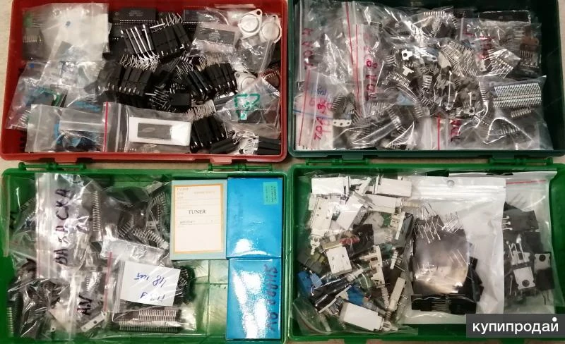 Микросхемы (БП, КР, УНЧ, ВУ, процессоры, ПЗУ...), транзисторы, тюнеры, выключатели - все новые не паяные. Более 800шт. Для тех кто ещё ремонтирует CTV телевизоры найдётся многое. Отдаю всё гуртом без "а у вас есть такая деталь?". Есть ещё конденсаторы, транзисторы (мелочёвка) - микст (распай рабочие и новые) - отдельный разговор. И есть рабочий распай (900шт) см. профиль. Не отсылаю!!! Приехали, осмотрели, посчитали (если не в "лом"), если всё понравилось и устроило - рассчитались наличными и забрали - как-то так. Цена за всё 25.000 руб.