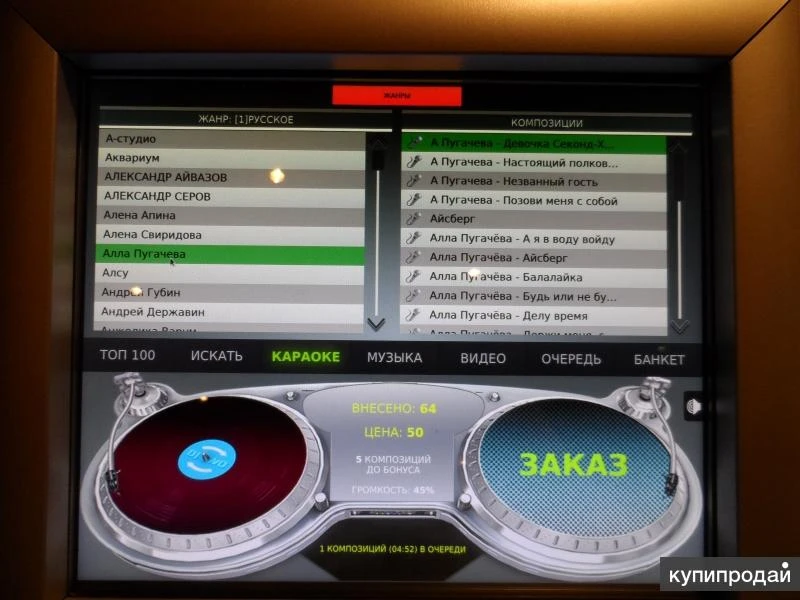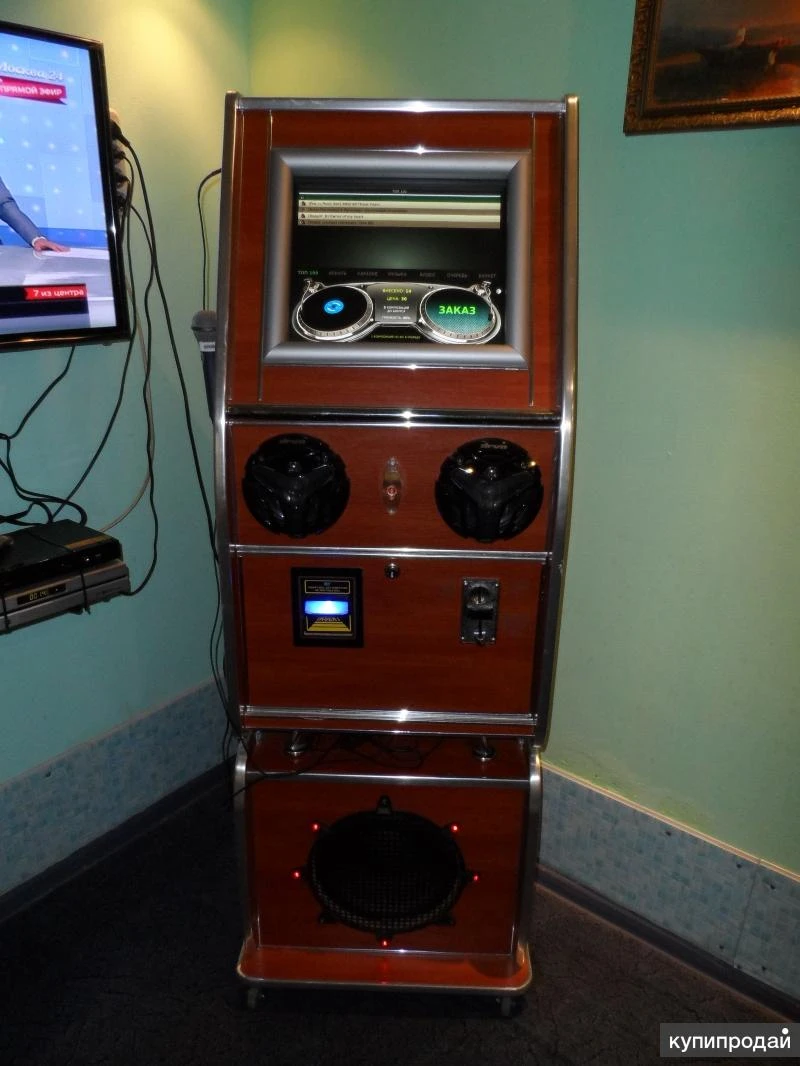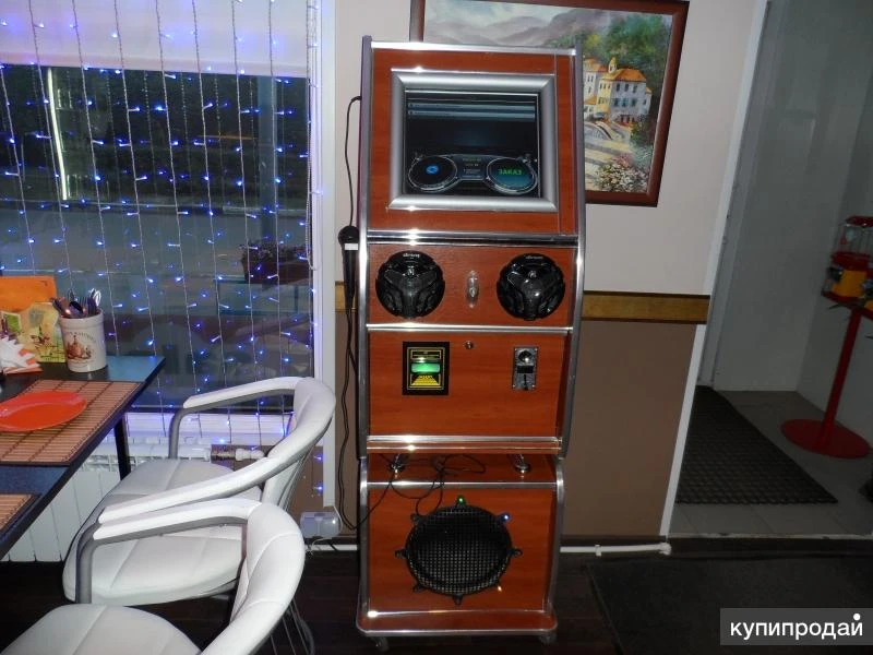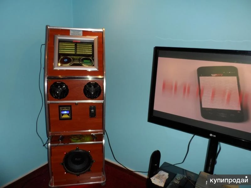 Музыкальный автомат с караоке б/у. Срок эксплуатации 4-7 лет. Програмное обеспечение выполнено на ЛИНУКСЕ-лицензии не надо. На автомате можно настроить функцию бонуса (бесплатная песня после .......заказов) Плей-лист-активный, но есть раздел ТОР-100, он формируется для каждого автомата индивидуально, в зависимости от заказов-чем больше заказов на песню, тем она выше в рейтинге. Через функцию поиск-можно по названию песни или исполнителя быстро найти необходимую композицию. Есть банкетный час-фиксированная плата за любое количество композиций в течении часа. Дополнительно есть возможность управлять пультом ДУ 1. Купюроприемник ICT P70 (принимает купюры старого образца от 10 до 500 рублей) и монетоприемник EU-2 (принимает все монеты от 1 до 10 рублей) Материнская плата ASUS H61 c двухядерным процессором от 2400Гц, оперативная память 4Гб, жесткий диск 3000Гб с записью более 200 000песен, караоке и видеоклипов. Монитор ЖК 17 дюймов, Один микрофон с микрофонным усилителем в комплекте. Цена 55 500руб. 2. Купюроприемник ICT L70 (принимает все купюры старого и нового образца от 10 до 2000 рублей) и монетоприемник EU-9 (принимает все монеты от 1 до 10 рублей) Материнская плата ASUS H81 c двухядерным процессором от 3000Гц, оперативная память 4Гб, жесткий диск 3000Гб с записью более 200 000песен, караоке и видеоклипов. Монитор ЖК 17 дюймов, Два микрофона с микрофонными усилителями в комплекте. Cветодиодная подсветка регулируется с отдельного пульта ДУ. Цена 82 500руб. С выходом на телевизор-на 4 000руб. дороже. Размеры автомата 177х55х45, вес 70кг. Есть возможность установки программного обеспечения PLAYBOX