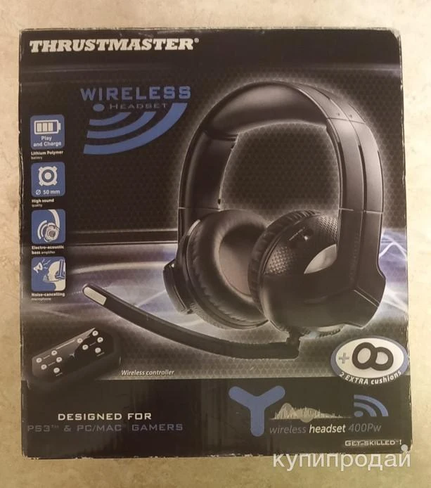 Характеристики Thrustmaster Y-400Pw ОСНОВНЫЕ ПАРАМЕТРЫ: Тип – гарнитура. Вид наушников – мониторные. Тип крепления – оголовье. Диаметр мембраны – 50 мм. ПОДКЛЮЧЕНИЕ: Тип подключения – беспроводные. Разъем – USB. Канал передачи данных – радиоканал. МИКРОФОН: Выключение микрофона – есть. Микрофон с шумоподавлением – есть. Съемный микрофон – есть. КОМПЛЕКТАЦИЯ: Количество пар сменных амбушюров – 2. ПИТАНИЕ: Тип элементов питания - Li-Ion-аккумуляторы.