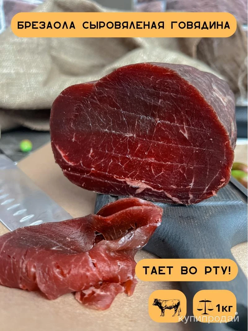 Брезаола - это сыровяленый традиционный итальянский деликатес из мяса высшего качества, выдержанный не менее 6 месяцев, приготовленный по старинному итальянскому рецепту. Производится в России, Орловская область. Сыровяленая говядина имеет нежный вкус и сладковатый терпкий запах.Отличается плотной консистенцией и богатым вкусом. Упаковка: каждый заказ мы режем и пакуем индивидуально в вакуумную упаковку, что позволяет деликатесу доехать до получателя в целости и сохранности без потери качества доставкой. Фасуем одним или несколькими кусками, что позволяет открывать вакуумные пакеты по мере необходимости. Хранение и срок годности: в каждой коробке присутствует Qr-код, при сканировании которого можно посмотреть ВСД (ветеринарные сопроводительные документы), которые подтверждаю качество продукции и сроки годности. После вскрытия, хранить в холодильнике при температуре от 1°C до 6°C. Допустима повторная вакуумация товара. Говяжью ветчину можно заморозить, при этом замороженной нарезать её правильно будет намного легче. Употребление: нарезать тонкими прозрачными ломтиками, подавать со свежим багетом, рукколой, оливковым маслом, грибами, солеными сырами и с бокалом красного вина. «Buon cibo. Buon vino. Buon amici»! (с ит. Хорошая еда. Хорошее вино. Хорошие друзья)