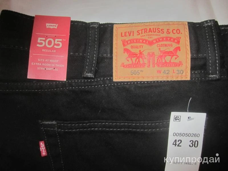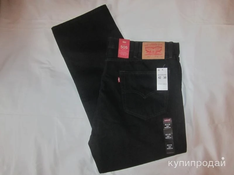 Продам новые джинсы Levis 505 Regular Fit Jeans 100% оригинал, абсолютно новые, цвет: Double Black 505-0260 классический чёрный. Джинсы прямого кроя, модель 505 это аналог Levis 501, только ширинка на молнии и чуть свободнее в бёдрах. Добротно пошитая, легендарная классика. Это джинсы для настоящих ценителей марки Levis, тех, кто понимает что такое "старая школа" (пошив 2015 года), кто застал и помнит из какого денима и по каким лекалам тогда шили джинсы, сегодня, к сожалению, и близко нет того качества, которое было 10 лет назад. Размер: W42 L30 (на рост до 180 см.) Полупояс 54 см., длина по внешнему шву 108 см., по внутреннему шву 75 см., ширина брючины внизу 24 см. Очень плотный деним, 100% хлопок, материал высокого качества плотностью 14,5 унций. Такая плотность позволяет джинсам в процессе носки не вытягиваться. После стирки не усаживаются. Произведены в Египте для американского рынка. Джинсы привезены из США в 2016 году. Без торга. Есть и другие новые джинсы W42 L32 и W44 L32. Физически джинсы находятся в Лобне, возможна встреча у метро Лианозово по предварительной договорённости. В регионы отправляю почтой России. Вышлю дополнительно любые замеры и фотографии, а также отвечу на возникшие вопросы по телефону и в сообщениях.