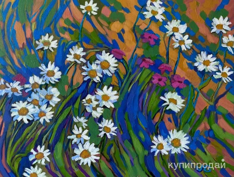 30х40, холст на картоне, акрил, 2024. Художник Виктория Гальцова. Свежая, с настроением лета и праздника жизни. Отличный подарок еле иои близким. Ромашки -символ семьи , нежности к близким.