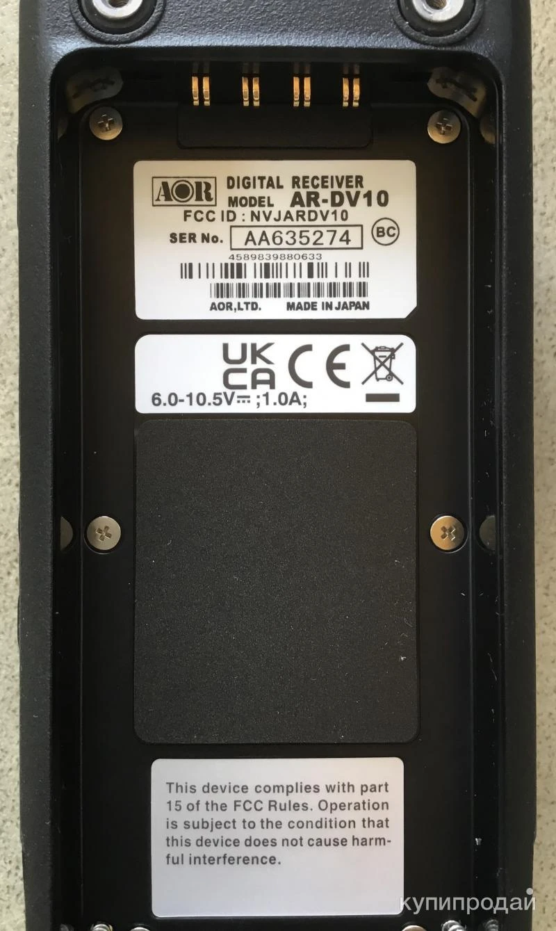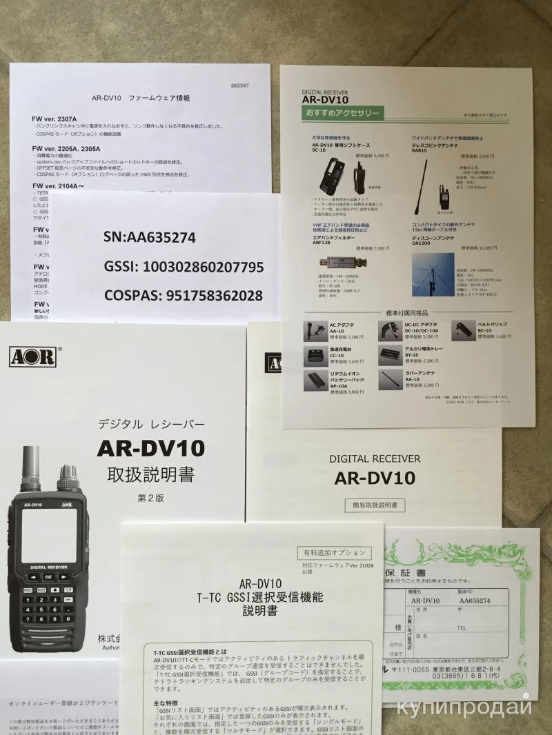 AR-DV10 — носимая версия приемника DV1 от компании AOR. Преимущества те же, что что и у DV1: самая широкая поддержка цифровых стандартов. Выпуск этого года, с новой платой и чипами, исправлена термостабилизация, переключение версий с кнопок Япония, США, Европа. Установлены платные опции GSSI Tetra и Cospas и распечатаны, полный комплект всей документации и опций прилагается. Обучение и техподдержка.Обучение эксплуатации. При отправке тоже дистанционно. Внимание! Цена имеет справочный характер. С 24. 02. 2022 стоимость рассчитывается по параметрам экономической рентабильности, уточняйте, всегда на связи. Частотное исполнение 0,1-1300 МГц. Рекордное количество поддерживаемых цифровых модуляций: APCO25, DMR / MotoTRBO, dPMR, TETRA, NXDN / NEXEDGE / IDAS (только Very Narrow 4800 бит/c), DSTAR, Yaesu C4FM (Fusion), ВCR, Alinco EJ-47U .Расширенные настройки для цифровых и аналоговых режимов: RAN и код скремблера (NXDN), NAC (P25), цветовой код и слот (DMR), CTCSS, DCS и инверсионный дескремблер (NFM) и др. Прием экстренных передач «КОСПАС-САРСАТ»: как аналоговых на 121.5 МГц, так и цифровых на 406 МГц. При этом отображается направление на источник сигнала, его идентификатор и GPS-координаты.Отображение «От кого»/«Кому» в режиме DSTAR Аналоговые модуляции: AM, NFM, WFM, LSB, USB, CW Тип приемника: SDR/супергетеродин с одним преобразованием (ПЧ 47,25 МГц) WFM 64-108 МГц — прямая оцифровка AM 0,52-1,71 МГц — прямая оцифровка Полосы пропускания по ПЧ: 200 / 500 Гц, 1,8 / 2,6 / 3,8 / 5,5 / 6 / 8 / 15 / 30 / 100 / 200 кГц (зависит от выбранного режима приема) 3 независимых VFO Чувствительность в зависимости от вида модуляции: SSB: 0,3 мкВ @ 10 дБ С/Ш AM: 1,6 мкВ @ 10 дБ С/Ш FM: 0,3 мкВ @ 12 дБ SINAD WFM: 2,6 мкВ @ 12 дБ SINAD Память: 2000 каналов памяти (40 банков по 50 каналов) 40 диапазонов для поиска 1 приоритетный канал Алфавитно-цифровые имена для каналов Коммуникационные возможности: Антенный вход: гнездо BNC, 50 Ом (максимальный безопасный уровень 0 дБм) Внешнее питание 6,5-10,5 В @ 250-500 мА (не учитывая тока заряда АКБ) Разъем для подключения наушников: джек 3,5 мм Слот для карты памяти microSD (поддерживается запись звука в формате WAV @ 19,2 кГц, а также запись в формате I/Q @ 30 кГц, 38,400 сэмплов, 16 бит) Компьютерные возможности: Управление каналами через фирменное ПО AR Data Editor для Windows (бесплатно) Удаленное управление приемником через порт micro-USB Доступный интерфейс удаленного управления для написания стороннего ПО Обмен данными с частотами в формате CSV Голосовой инвертор (инверсионный дескремблер в диапазоне 2000-7000 Гц с шагом в 10 Гц) Поисковик ключей скремблера в стандарте NXDN/NEXEDGE/IDAS (32768 комбинаций) Режимы работы шумоподавителя: по уровню сигнала, по уровню шума, по наличию цифровой передачи, по наличию тона (CTCSS), по наличию кода (DCS) Стабильность частоты: 5 ppm на частотах выше 25 МГц Встроенный аттенюатор 10 дБ Крупный дисплей: диагональ 61 мм, 160 x 160