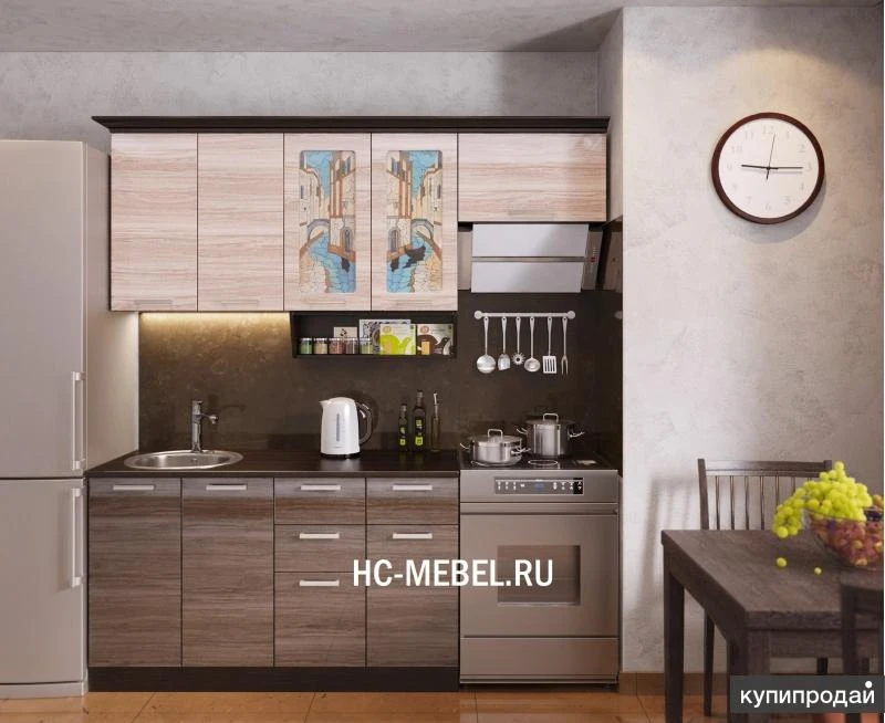 Предлагаю кухонные гарнитуры ВЕНЕЦИЯ, в частности Венеция-2, размером 2000мм. Материал: Корпус-ЛДСП, цвет венге. Фасад-МДФ, цвет серый глянец/ясень бежевый глянец. Столешница 38мм, цвет венге. Ручка скоба металл матовый. Цоколь в цвет корпуса. Стекло витраж. В стоимость кухонь входят: нижние шкафы, верхние полки, ручки, ножки, столешница, мойка. Также в качестве дополнительной опции предоставляем абсолютно БЕСПЛАТНО: сушку с поддоном, карниз и полочку для специй. Одним словом, в комплектах все предусмотрено для легкой покупки и установки