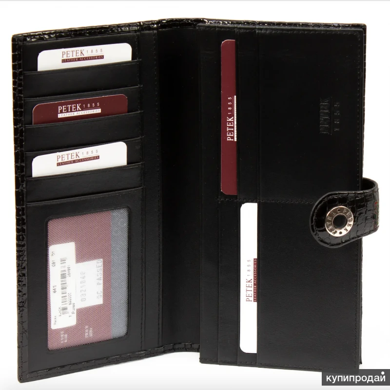 Данная модель портмоне Petek 441.089.01 (id.69914 на официальном сайте) изящна, и в то же время вместительна, отлично подойдет для девушки, которая любит привлекающие аксессуары и акценты. Внутри этого кошелька расположено два отделения для купюр различной валюты и номинала, монетница на молнии, находящаяся между ними. Для кредиток и дисконтных карт в модели находится 12 отделений. Также предусмотрены два потайных кармашка и сетчатое отделение для документов и различных бумаг. Портмоне закрывается на кнопку с необычным хлястиком. Вся фурнитура выполнена из швейцарской стали. Материал Кожа Тип кожи Лакированная Застежка Есть Размер 19 х 10 см. Расположение монетницы Нет Вид кожи по способу отделки Рептилия Короткое описание Классическое женское портмоне Petek 441, удобное и функциональное. Размер: 19 х 10 см. Цвет Черный