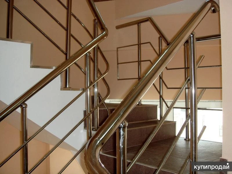 Производство перил и ограждений для лестницы из нержавеющей стали для дома, дачи или магазина, металлоконструкции из нержавейки. Поручни и перила из нержавеющей стали неприхотливые, не требуют дополнительных обработок, или окрашивания и не подвержены коррозии, не меняют свой цвет, имеют привлекательный внешний вид и высокую прочность и износостойкость. Возможны варианты изготовления, комбинирование с деревянными поручнями, безопасным стеклом. Перила из нержавейки, невысокая цена за погонный метр, большой выбор вариантов исполнения по Москве.
